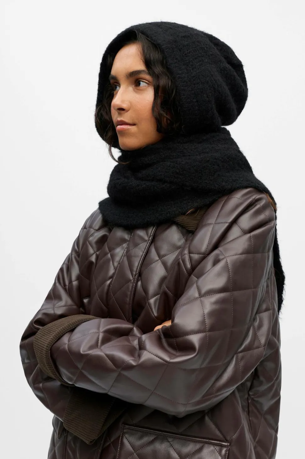 • Fintstrikket halstørklæde med hætte