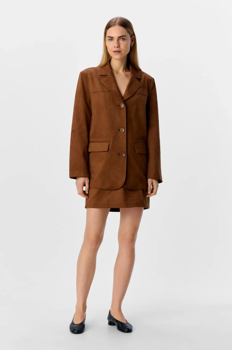 • Jakke-model i ruskindsimitation