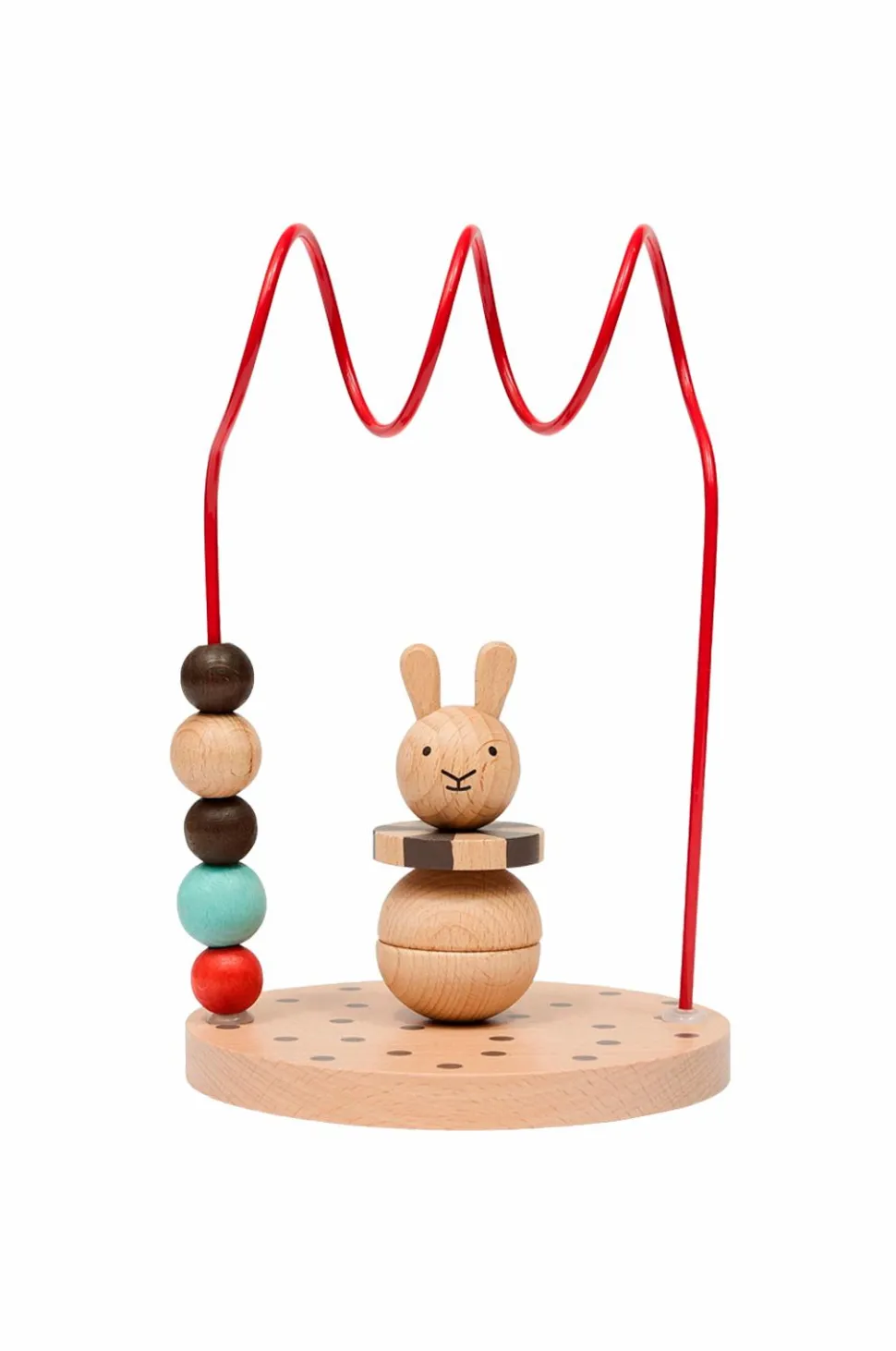 Cirkus rabbit abacus er et charmerende stablelegetøj med en rabbit af træ og farverige træperler. Børn kan stable rabbit på kuglerammen og på den måde skabe en legende og interaktiv oplevelse. Med sit enkle design og livlige farver giver cirkus rabbit abacus et sjovt dekorativt præg til ethvert rum, samtidig med at den giver underholdning til de små.