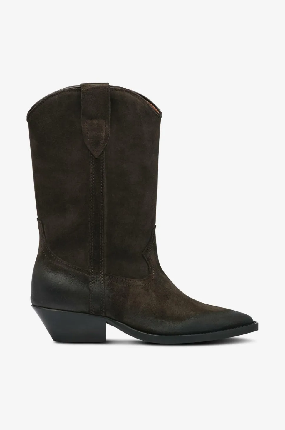 • Cowboystøvler i ruskind med afrundet kant på toppen