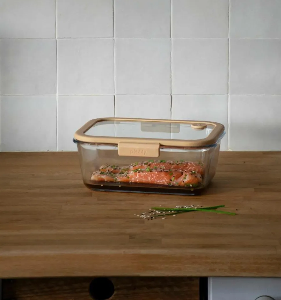 Pebblys vakuumpakningsdåser i glas er en komplet løsning til konservering af fødevarer, der kombinerer glassets bekvemmelighed med vakuumpakningsteknologi. Lågene på dåserne er udstyret med ventiler for at sikre perfekt lufttæthed. Det sikrer optimal beskyttelse mod oxidering og bakterier og forlænger fødevarernes holdbarhed. Vakuumpakning er en effektiv metode til at forlænge fødevarers holdbarhed, reducere spild og bevare friskhed, smag og næringsstoffer. Det gør det også nemmere at tilberede måltider på forhånd, styre portionerne og bevare sæsonens råvarer.