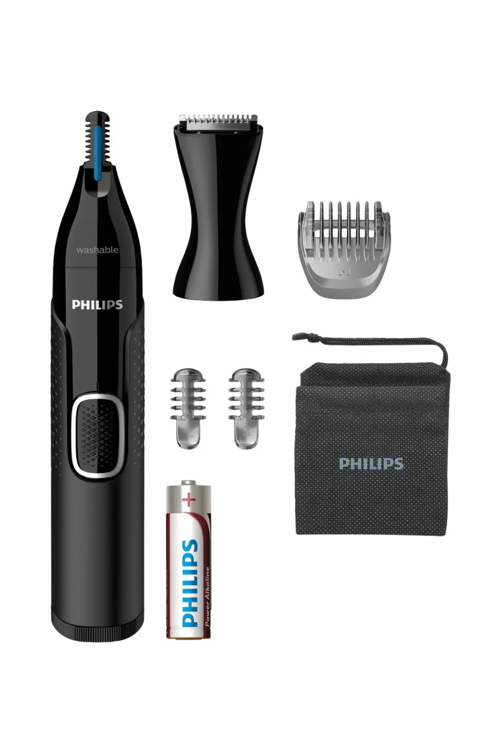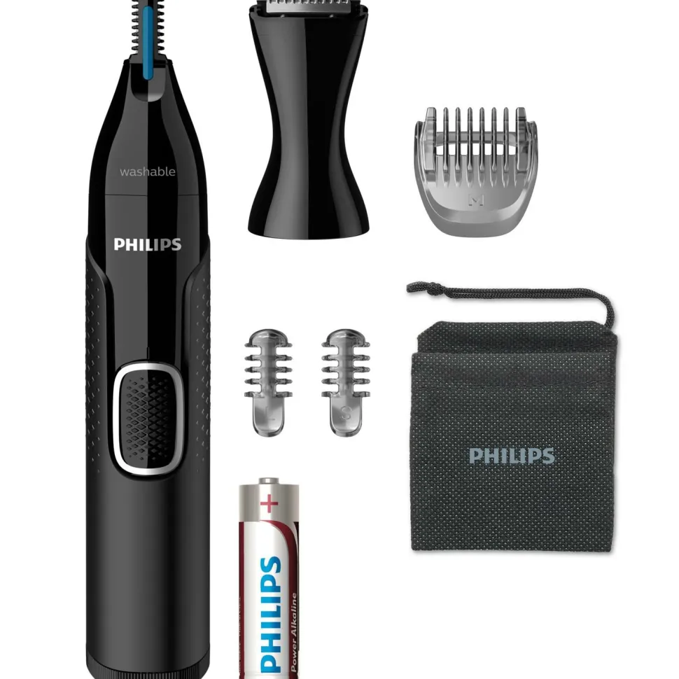 Philips næsetrimmer i serien 5000 trimmer skånsomt næsehår, ørehår, øjenbryn og detaljer. Den nye PrecisionTrim-teknologi og Protective Guard-systemet er designet til at sikre enkel og effektiv trimning uden at hive og trække.