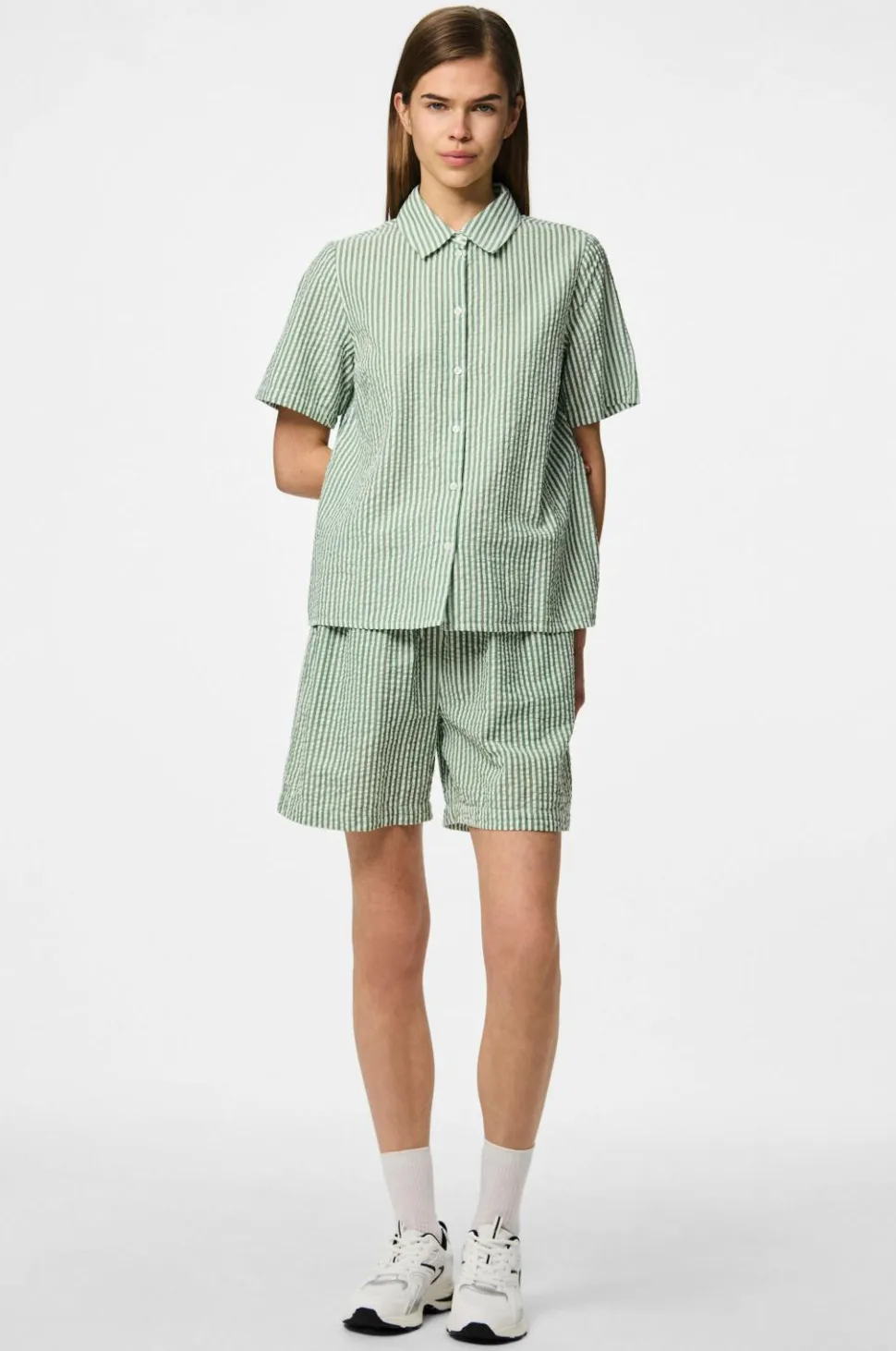 • Stribet shorts i bomuld