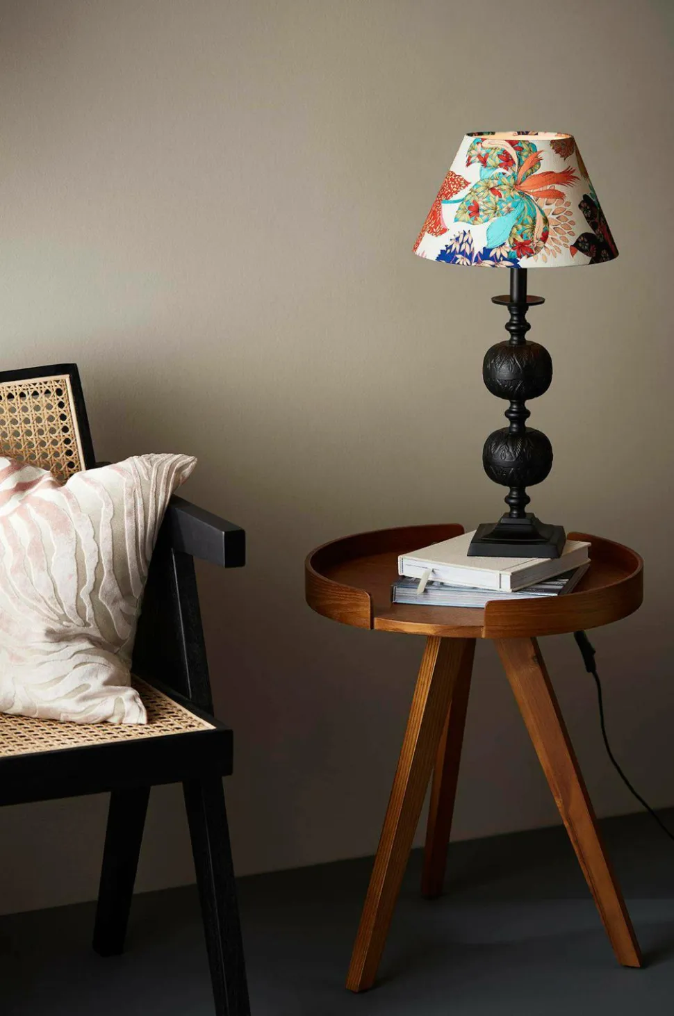 Lampefod Flory i metal, en klassisk lampe med kugler som er støbt med en bladstruktur. Inspireret af havens blade. Højde 33 cm, fod bredde 12,5 cm og dybde 12,5 cm. 1,5 meter plastledning med strømafbryder. E27. Maks. 40 W. IP20. Passer med lampeskærm op til ca. 20 cm i diameter. Pære medfølger ikke.