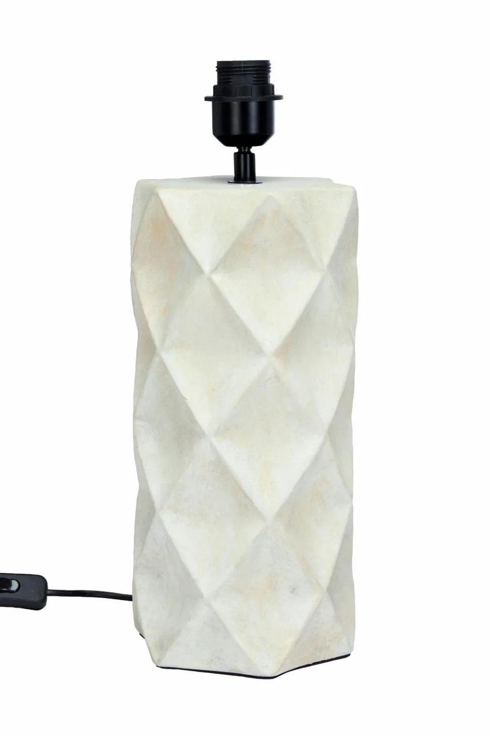Hazel lampefod i keramik. Lampefoden er håndlavet og udskåret med en honeycomb-effekt, der skaber en smuk dybde og et fantastisk lysspil. Lampefodens vintagefinish gør hver lampe unik og betyder, at netop din lampe kan afvige lidt fra produktbilledet. Ledning med strømafbryder og stik. E27 fatning. Maks. 40 W. IP20. Højde 43 cm, diameter 16 cm. Passer til lampeskærm med 25-35 cm diameter. Pære købes separat.