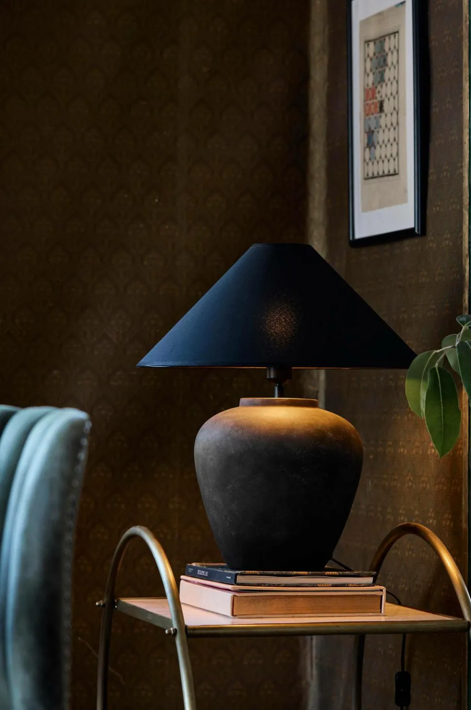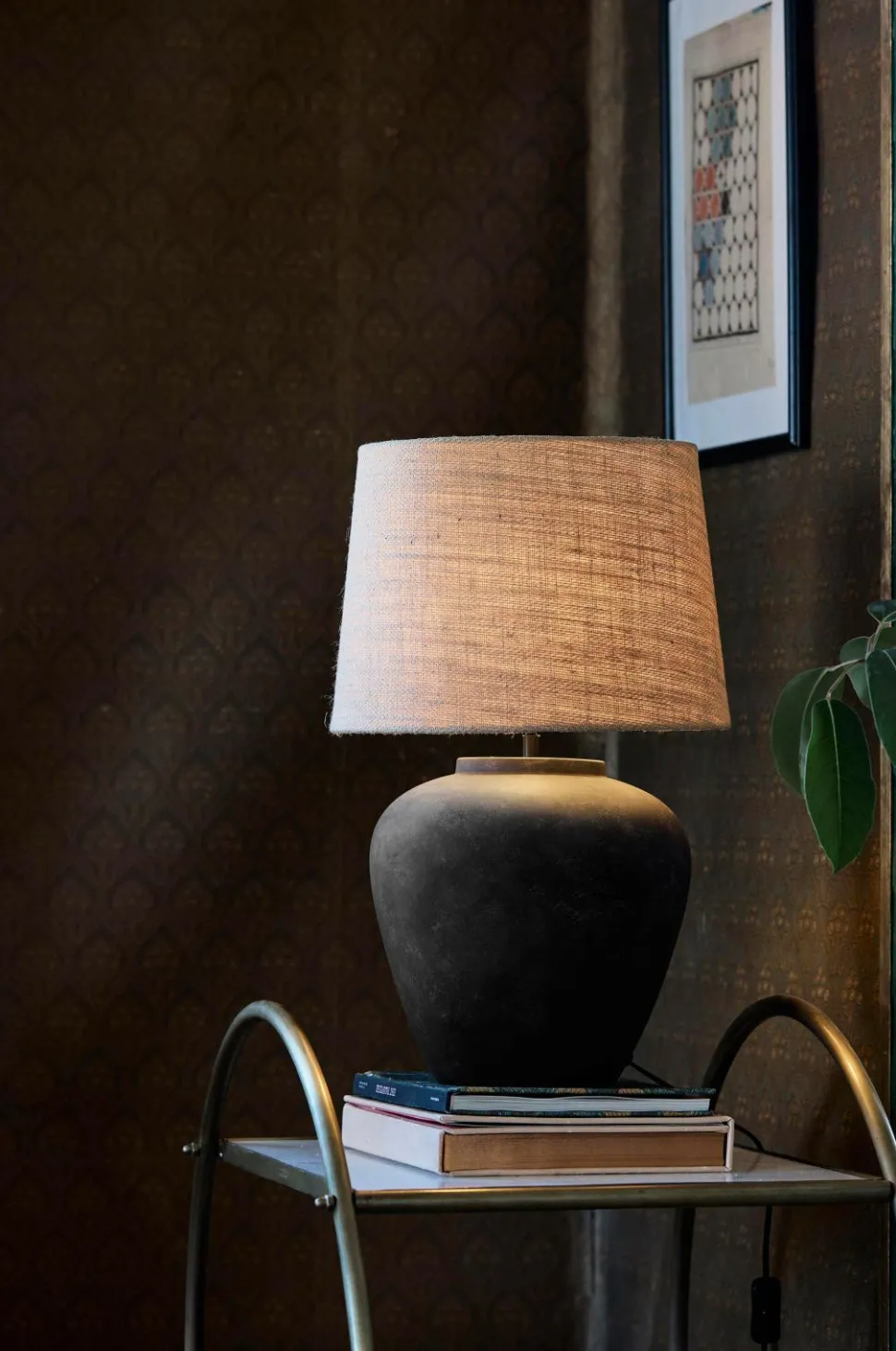 Lilly lampefod i keramik. Lampefoden er håndlavet og designet med en smuk urneform. Lampefodens vintagefinish gør hver lampe unik og betyder, at netop din lampe kan afvige lidt fra produktbilledet. Sort ledning med strømafbryder og vægstik. E27 fatning. Maks. 40 W. IP20. Højde 37 cm, diameter 29 cm. Passer til lampeskærm med 25-35 cm diameter. Pære købes separat.