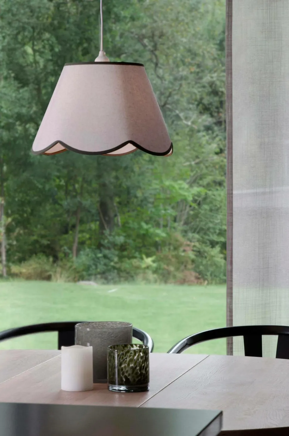 Denne smukke lampeskærm i hørlignende stof blander klassisk form med moderne alsidighed. Med sin bølgede underkant og bløde tekstur giver den et elegant præg til ethvert rum – uanset om den bruges som pendel eller på en lampefod. Takket være det vendbare e27-stik kan skærmen nemt tilpasses dine behov: Monter den på et loftsophæng (sælges separat) for at skabe et blødt lys fra oven, eller sæt den sammen med en passende bord- eller gulvlampe for at få en raffineret belysning.