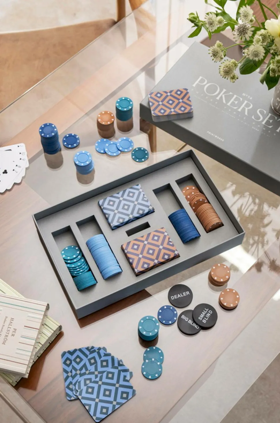 Oplev vores pokersæt, hvor design møder spænding. Dette sæt indeholder alt, hvad du skal bruge til en spændende spilleaften: pokerchips, spillekort i professionel kvalitet og letlæselige instruktioner på engelsk, fransk og tysk. Træd ind i de klassiske brætspils verden med vores eksklusive klassiske spilserie. Med et rent, minimalistisk design oversat til levende farver vil de løfte din boligindretning, uanset hvor du placerer dem. Uanset om de spilles eller vises frem, vil de med garanti vinde.