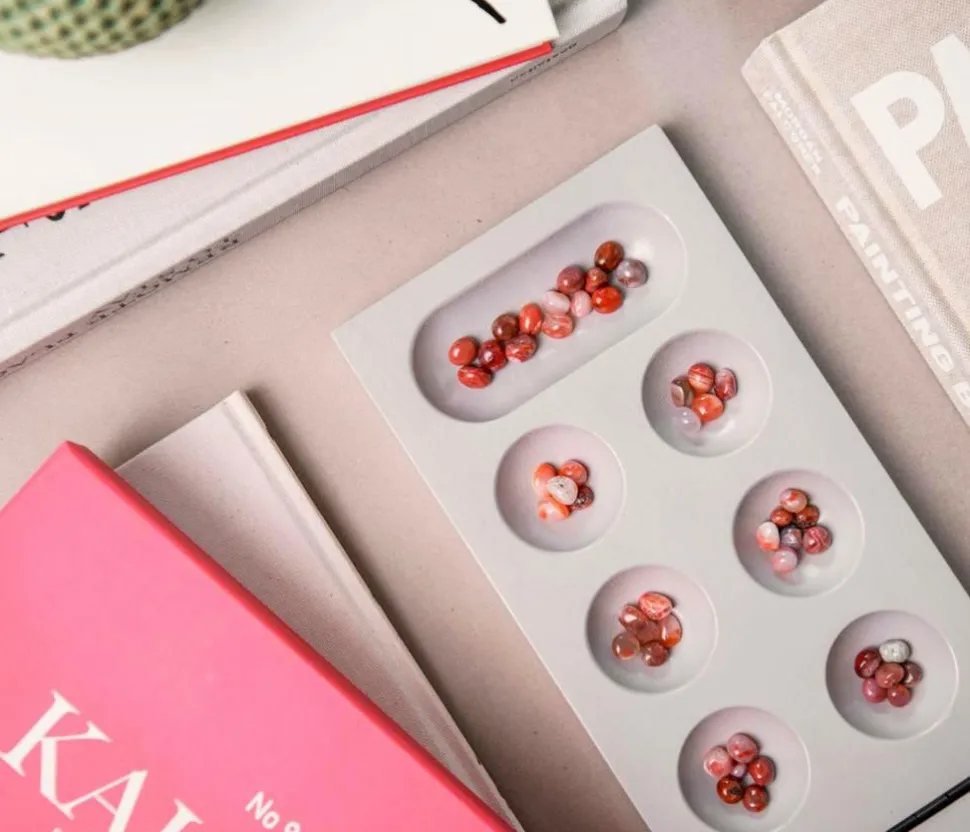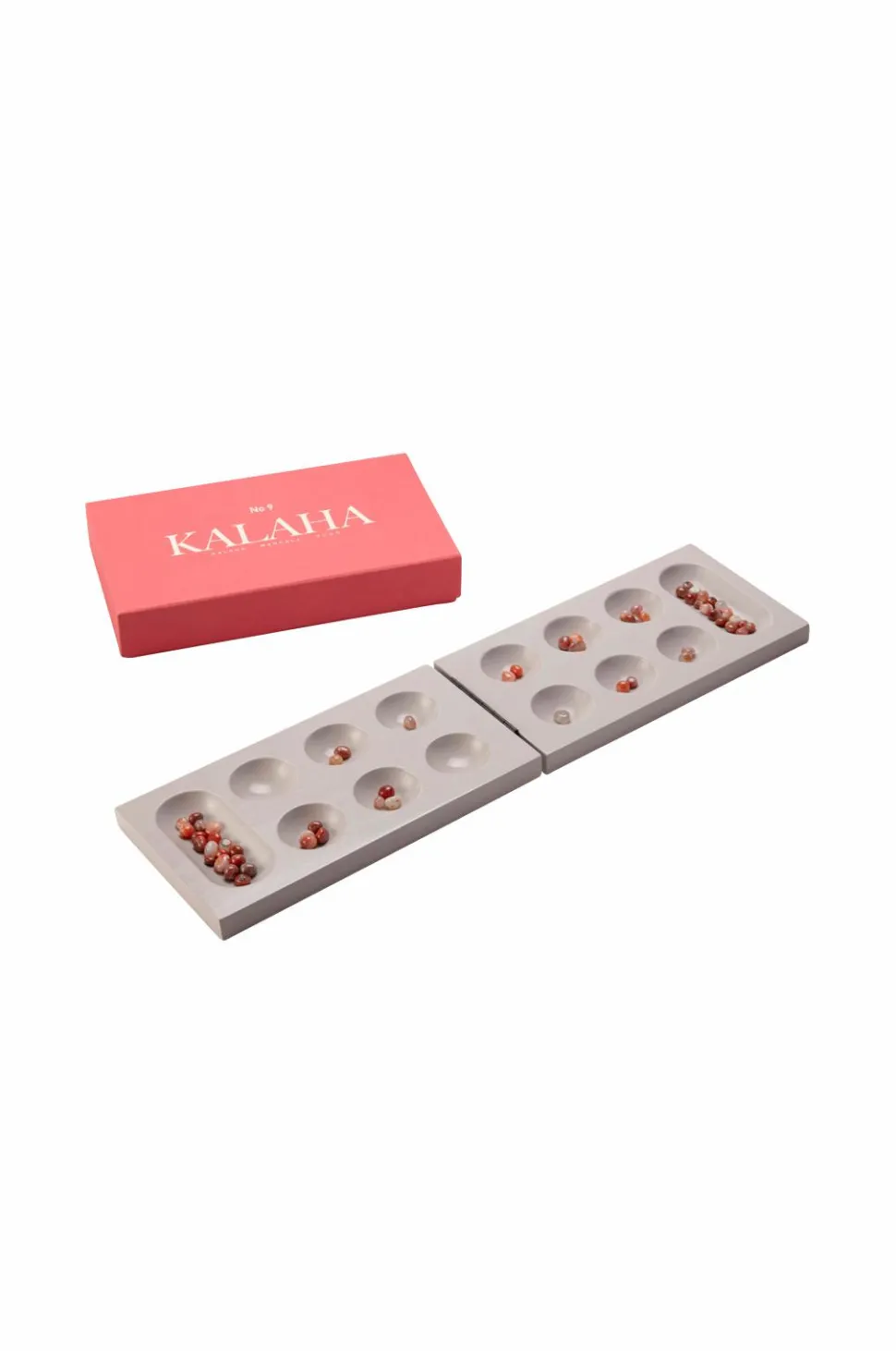 Kalaha med et nyt æstetisk twist, der ser lige så godt ud, spillet eller vist. Med en sober palette og karakteristisk grafik garanterer dette spil en legende farveindsprøjtning til alle boligindretninger. Vores spil er udelukkende lavet af lakeret træ, en solid konstruktion, der foldes sammen til et kompakt spil, når du opbevarer det. Leveres med brugervenlig vejledning på engelsk, fransk og tysk.