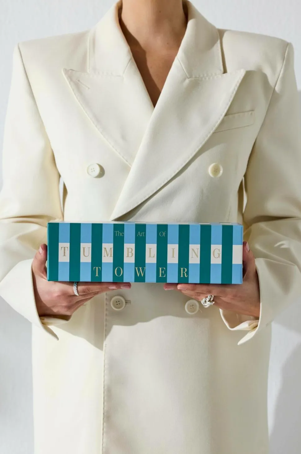 Det tumlende tårn er et tidløst spil med et farverigt og forfinet twist. Det er omhyggeligt designet i massivt træ og tilfører ethvert rum et legesygt, men raffineret touch – det er lige så velegnet til spilaftener som til udstilling. Mål: 28,5 x 8,5 x 8 cm.