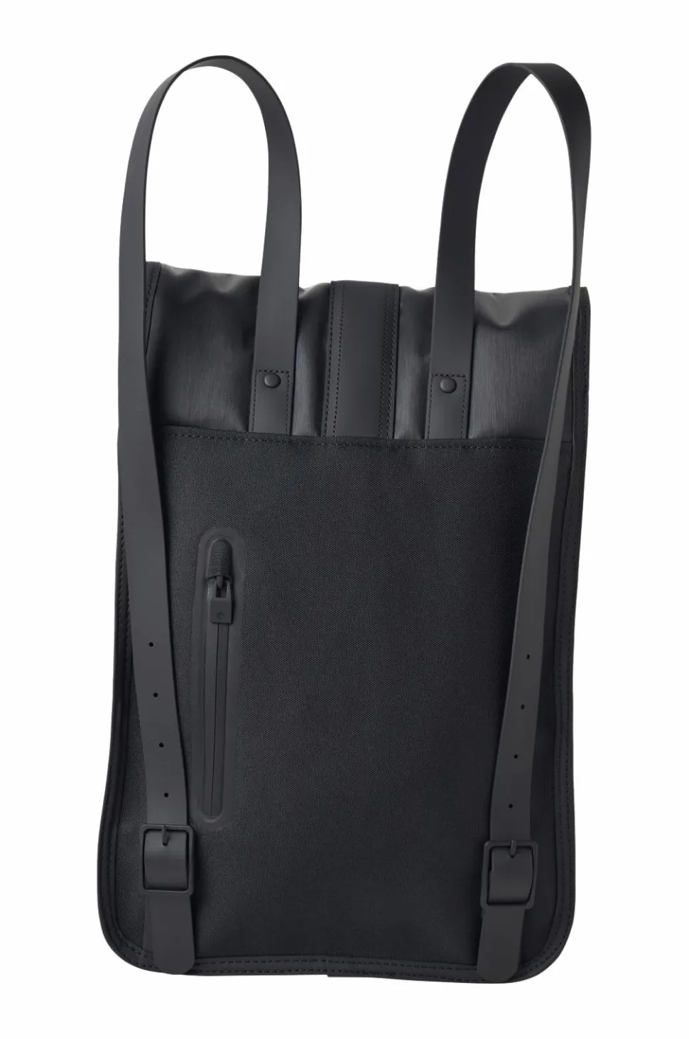 Rygsækken er fremstillet af Rains’ karakteristiske vandtætte PU-stof, som er designet med henblik på holdbarhed, styrke og en blød fornemmelse.