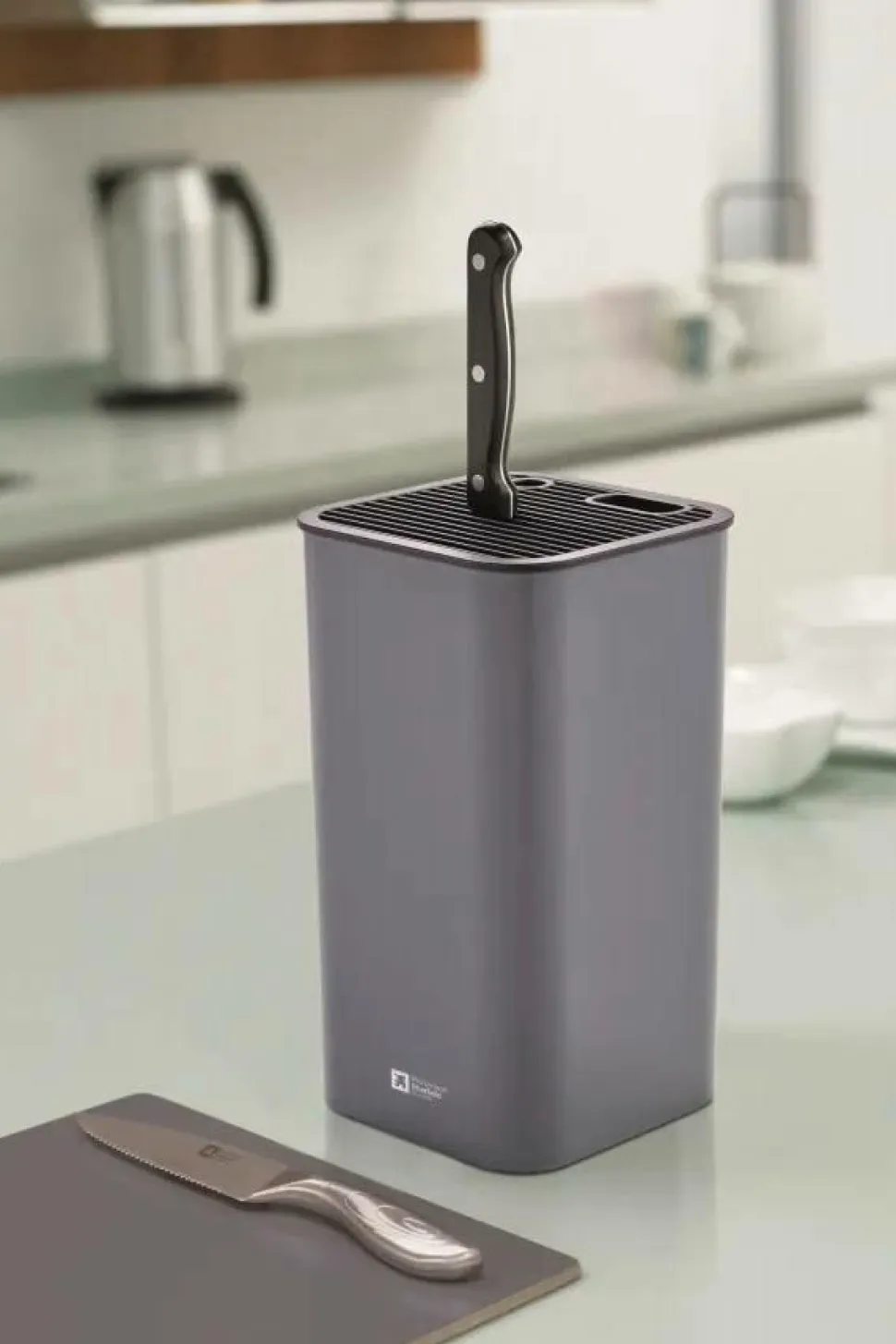 Opbevar dine knive pænt og sikkert i denne knivholder fra Richardsson Sheffield. Plads til flere knive, sakse og slibestål.
