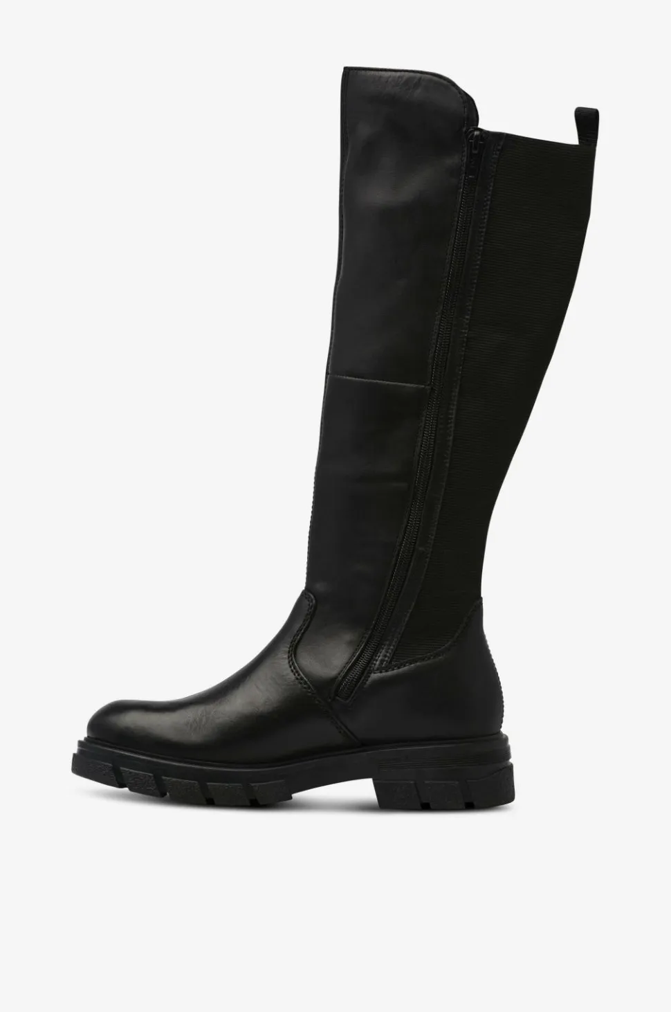 • Varmt foret model i læder med bredt elastisk panel bag på skaftet