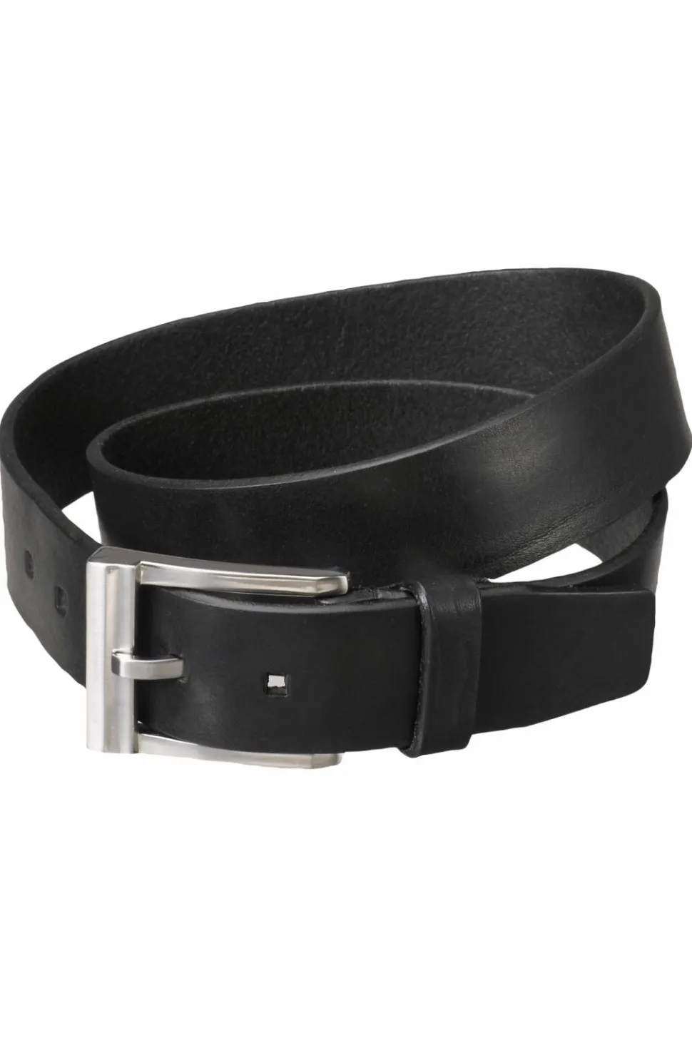 Solidt skindbælte med lidt større, sølvfarvet metalspænde.