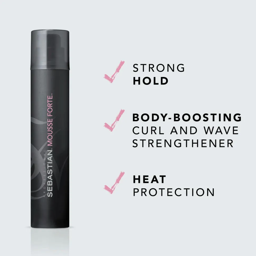 Definer og beskyt krøller og bølger med Sebastian Professional Mousse Forte. Dette professionelle stylingprodukt giver et stærkt hold og volumenboost til krøllet hår og efterlader det blødt. Sebastians stylingmousse med anti-krus-effekt hjælper med at styrke og kontrollere bølger og krøller, samtidig med at håret beskyttes mod varmeskader.