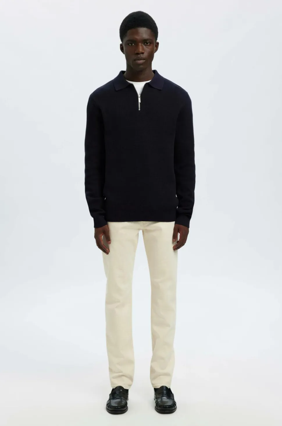 • Strukturstrikket trøje i bomuld