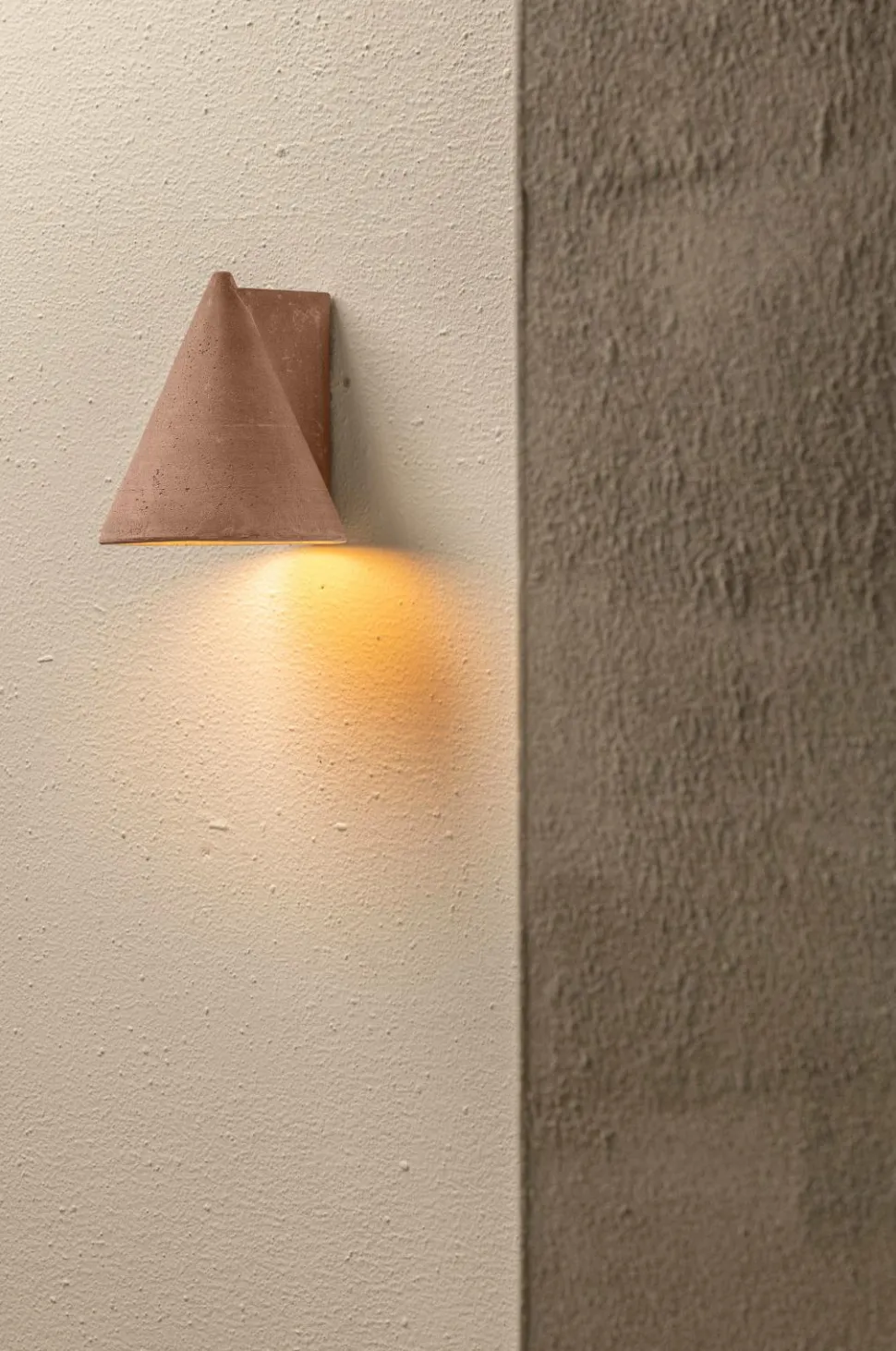 Arkitekten thijs prinsen , der er drivkraften bag lens°ass architects, har noget med mursten. I en renovering, hvor gamle mursten blev genbrugt i overflod, opstod ideen om at designe vægbelysning med samme rektangulære shape. Hans valg faldt på farvet beton i to nuancer og terracotta til at realisere designet. Kegle- og cylinderformerne er varianter og specifikt valgt for at imødekomme efterspørgslen efter karakterfuld omgivelsesbelysning, som oplyser vægge og gulv på en pæn måde.