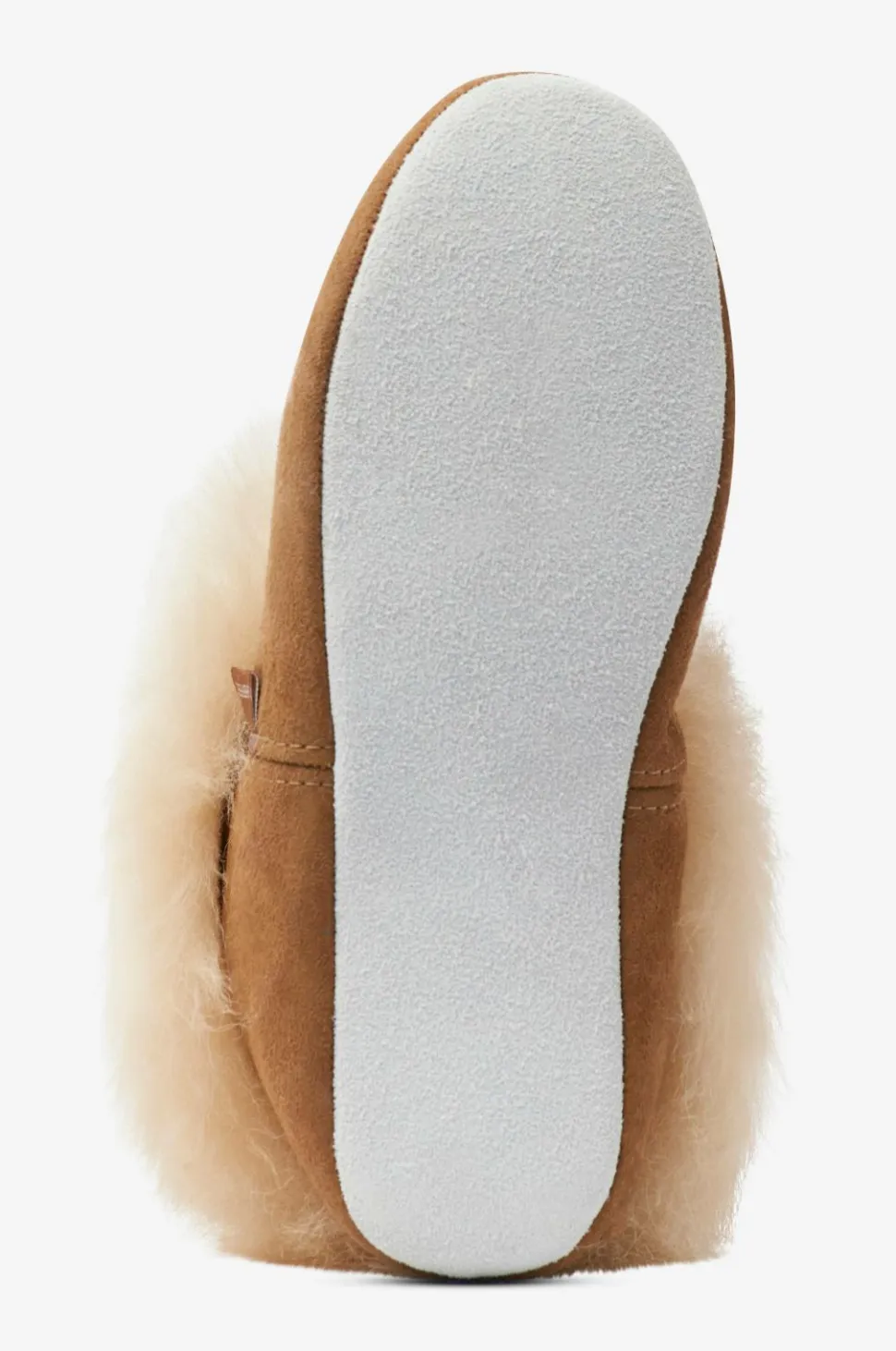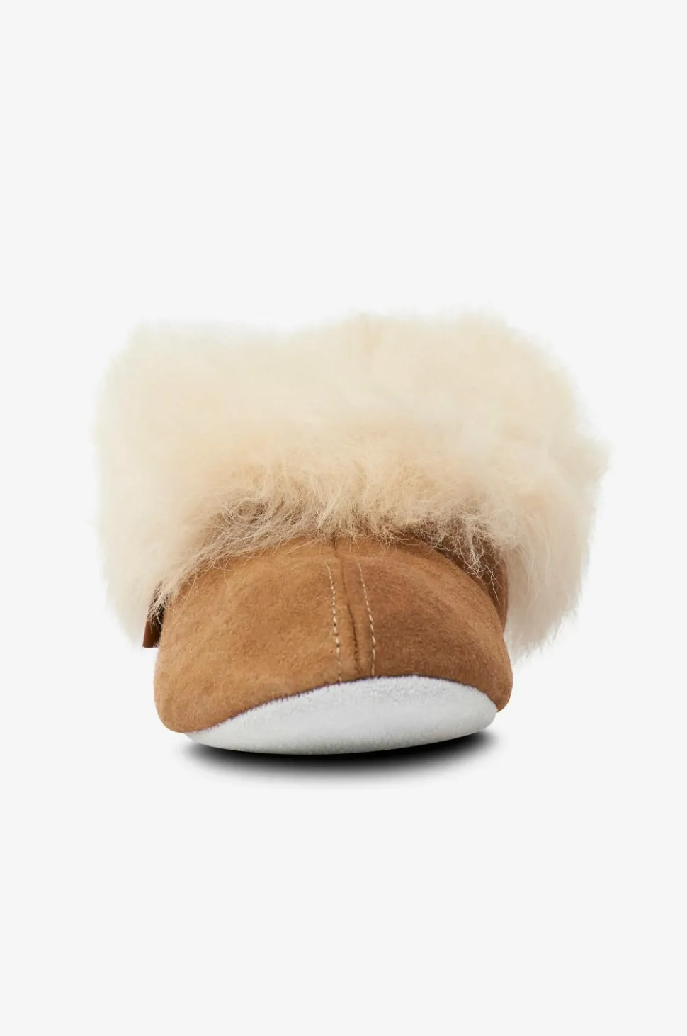 Fåreskindshjemmesko Annelie fra Shepherd er en skøn hjemmesko i træk-på-model i fåreskind som varmer og kan ånde. Hjemmeskoen har en blød kant i fåreskind. Tynd og smidig sål i ruskind.