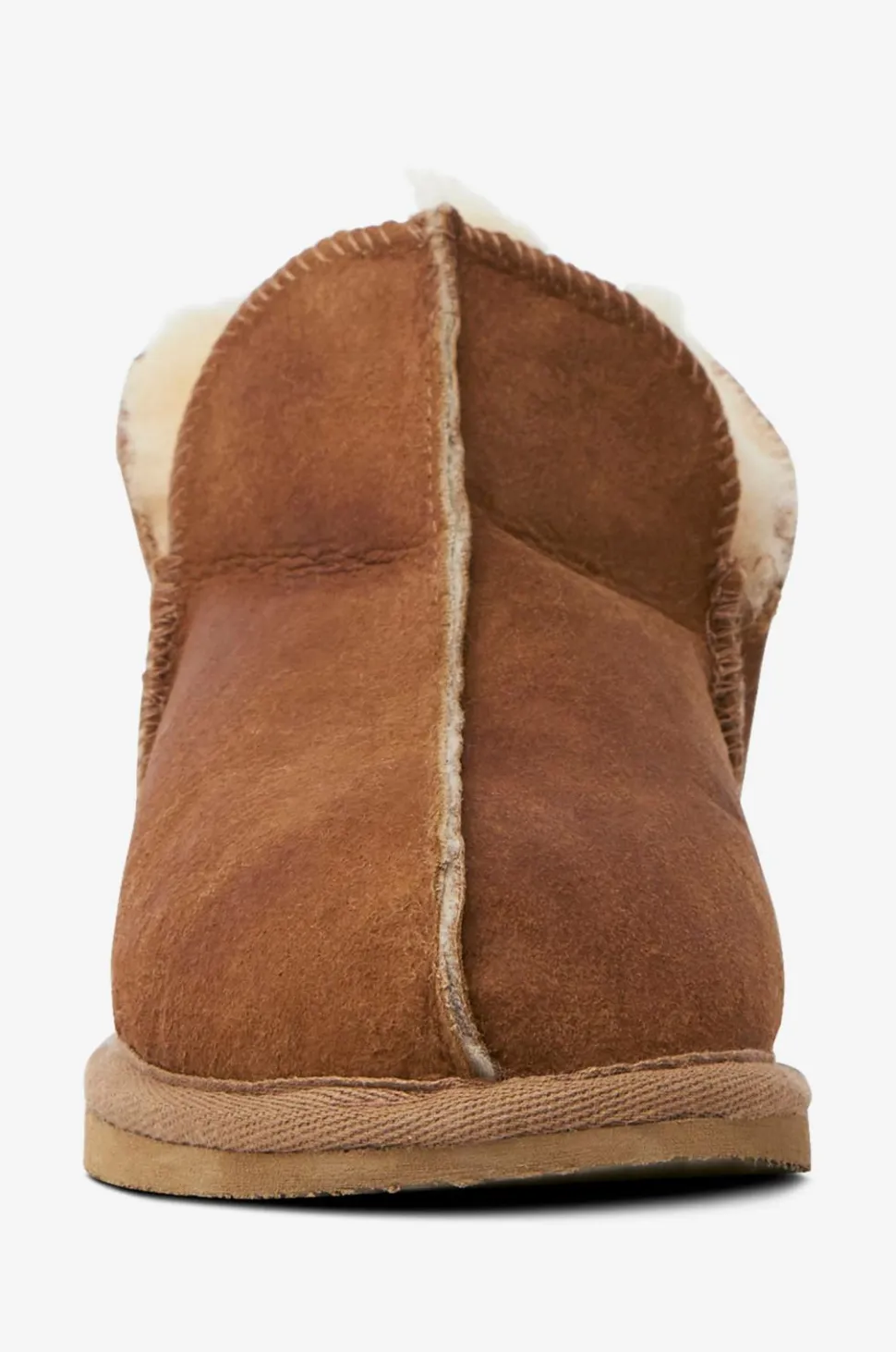 Fåreskindshjemmesko Annie fra Shepherd er en varm og skøn hjemmesko i træk-på-model i fåreskind som varmer og kan ånde. Sålen er robust i affjedrende cellegummi og klarer nemt en tur til postkassen. Slidsålen er riflet. Sålhøjde ca. 2 cm.