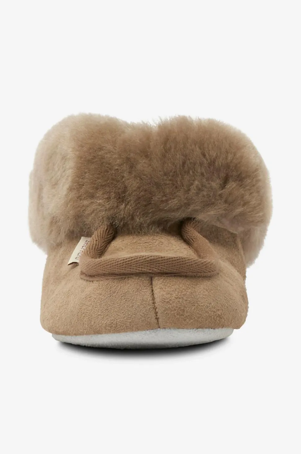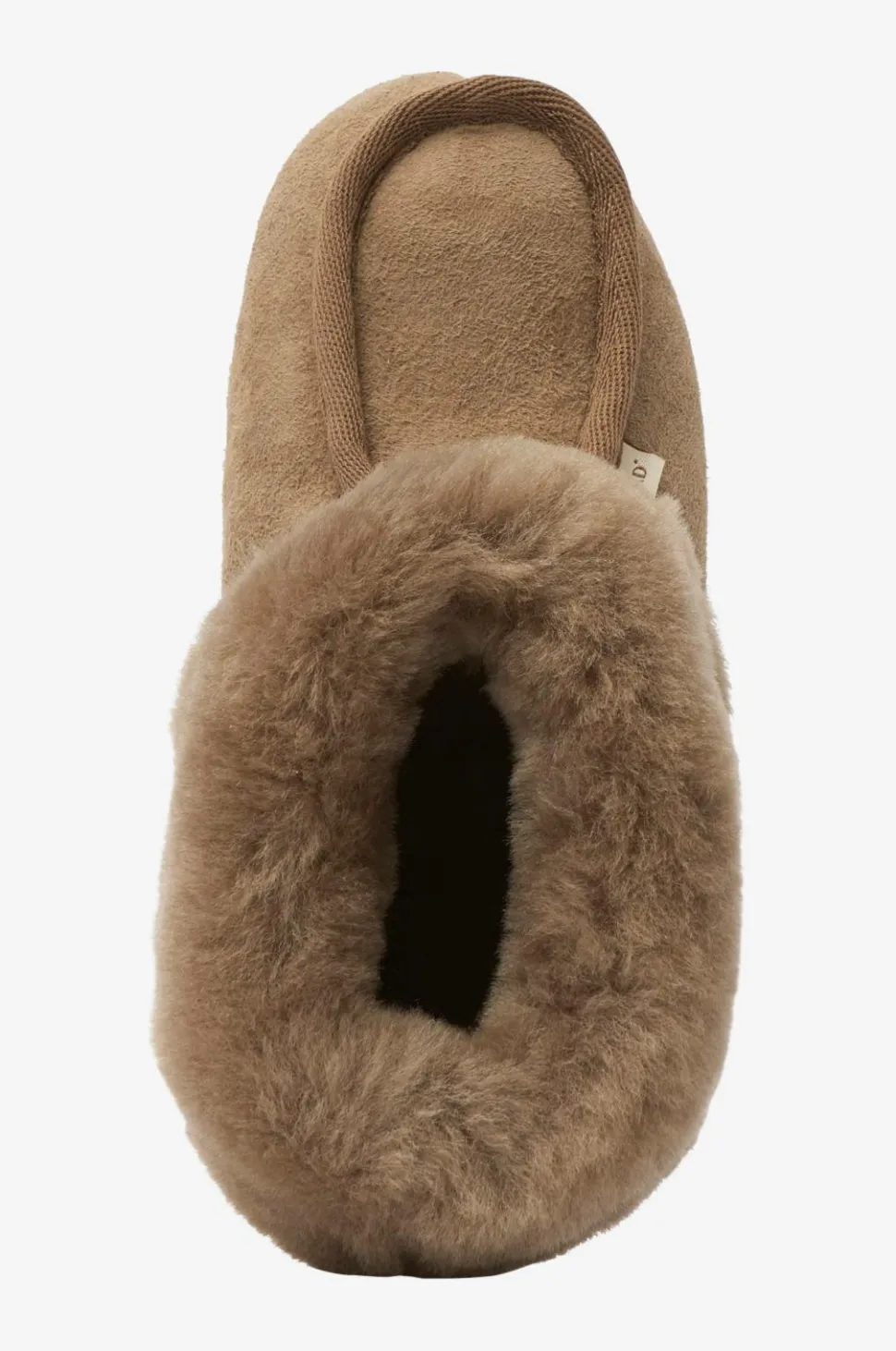 Fåreskindshjemmesko Osby fra Shepherd er varme og skøn i pull-on-model med foldbar skaft. Hjemmeskoene er i ægte fåreskind som varmer og kan ånde. Paspoleret kant i tekstil.