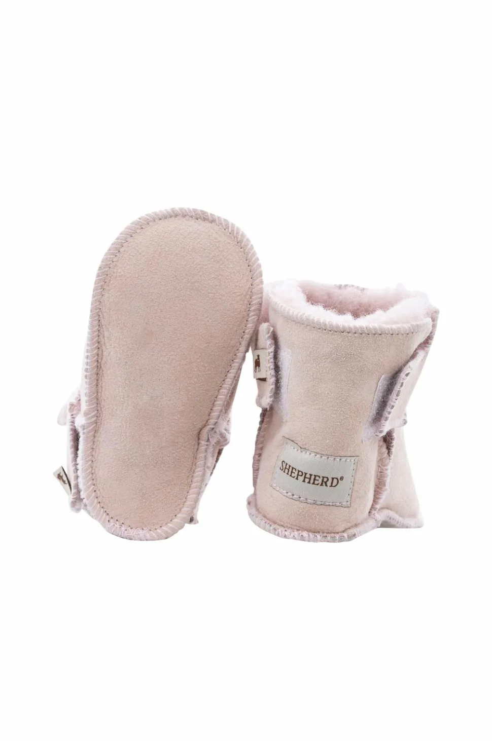 Fåreskindshjemmesko Piteå fra Shepherd i klassisk model med bred fåreskindskrave og dekorative sømme. Blød sål i ruskind.