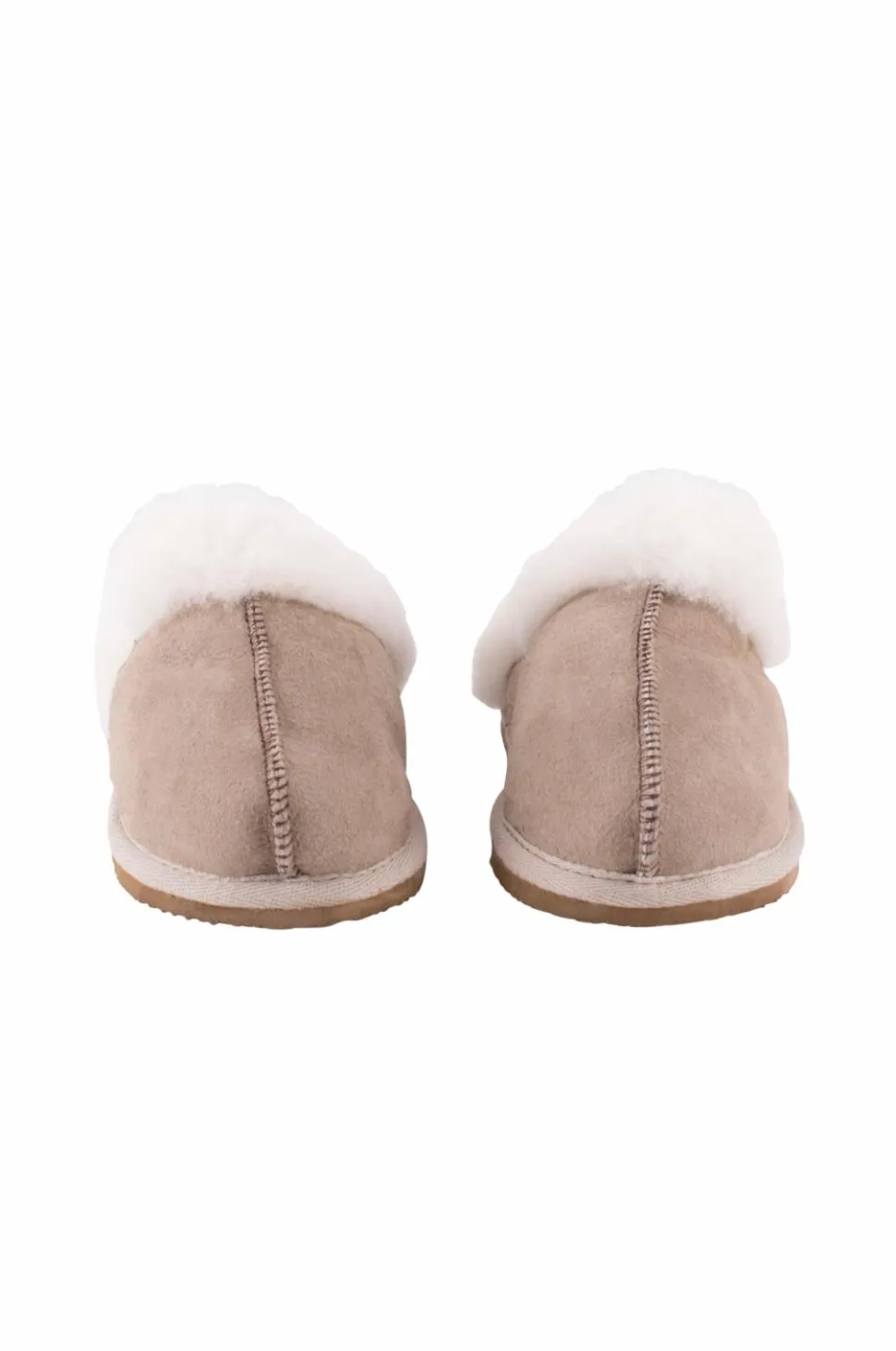 Shepherd Åre er et par børnetøfler i slip-on-model lavet af fåreskind. Hjemmeskoene har en dekorativ udvendig søm foran og en bred krave af fåreskind. Tekstilkant rundt om sålen. Ydersål i eva.