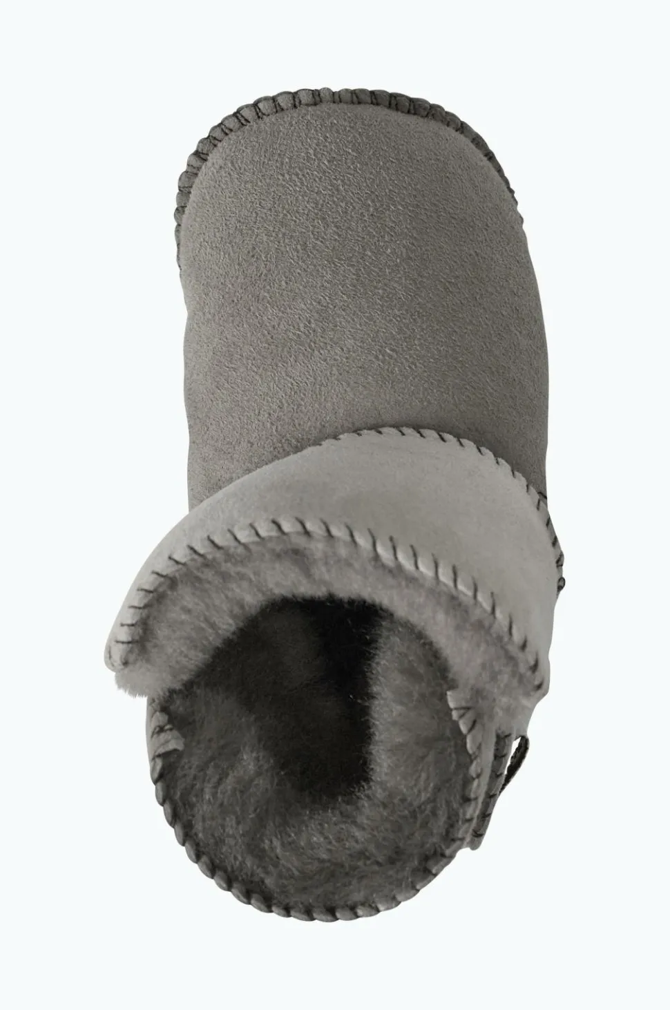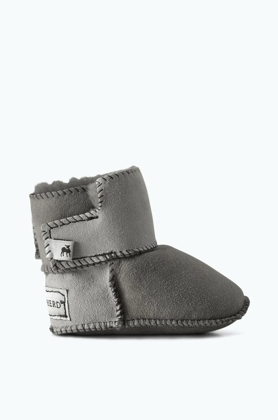 Borås fra Shepherd er en blød og varm hjemmesko i lammeskind som varmer og er åndbart. Åbning med velcro på begge sider af skaftet. Blød sål.