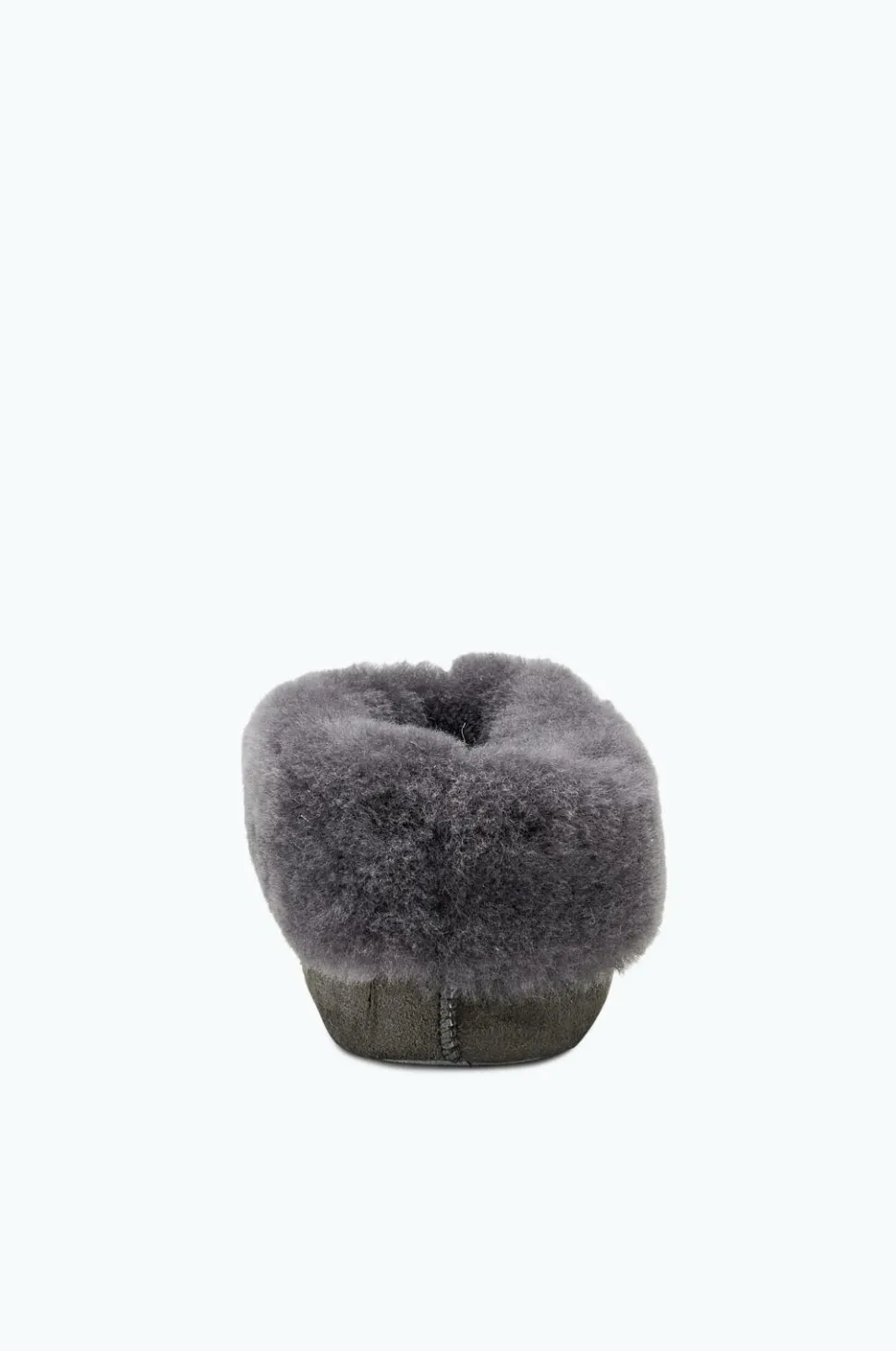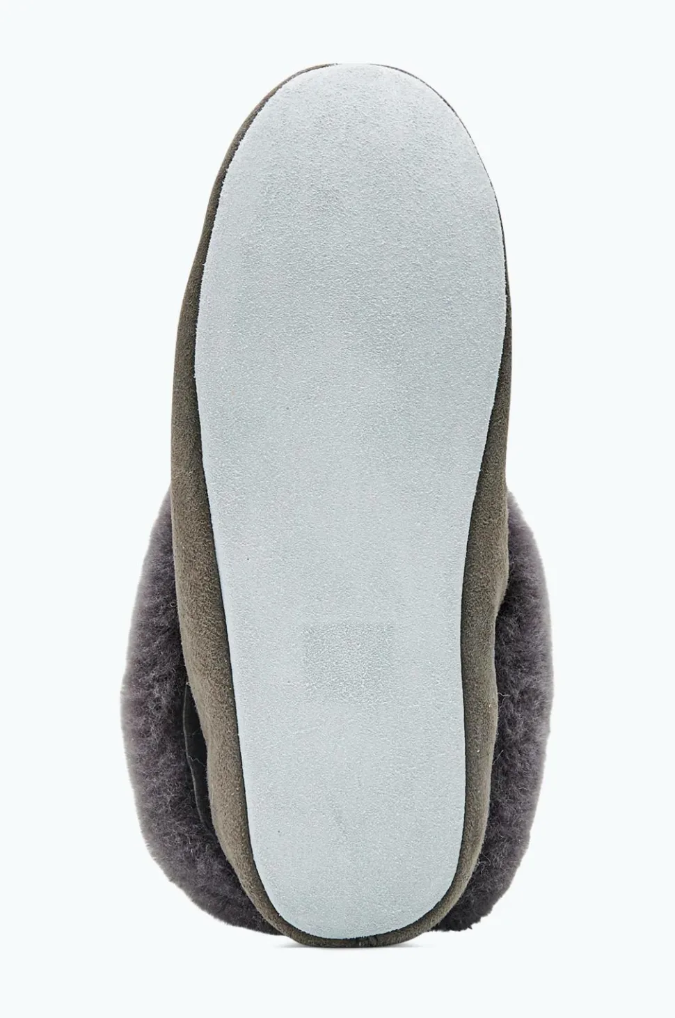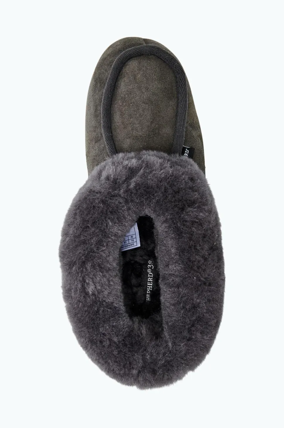 Hjemmesko i lammeskind Moa fra Shepherd er en varm og dejlig hjemmesko i træk-på-model med foldbart skaft. Hjemmeskoene er af ægte lammeuld som varmer og er åndbart. Paspoleret kant i tekstil.
