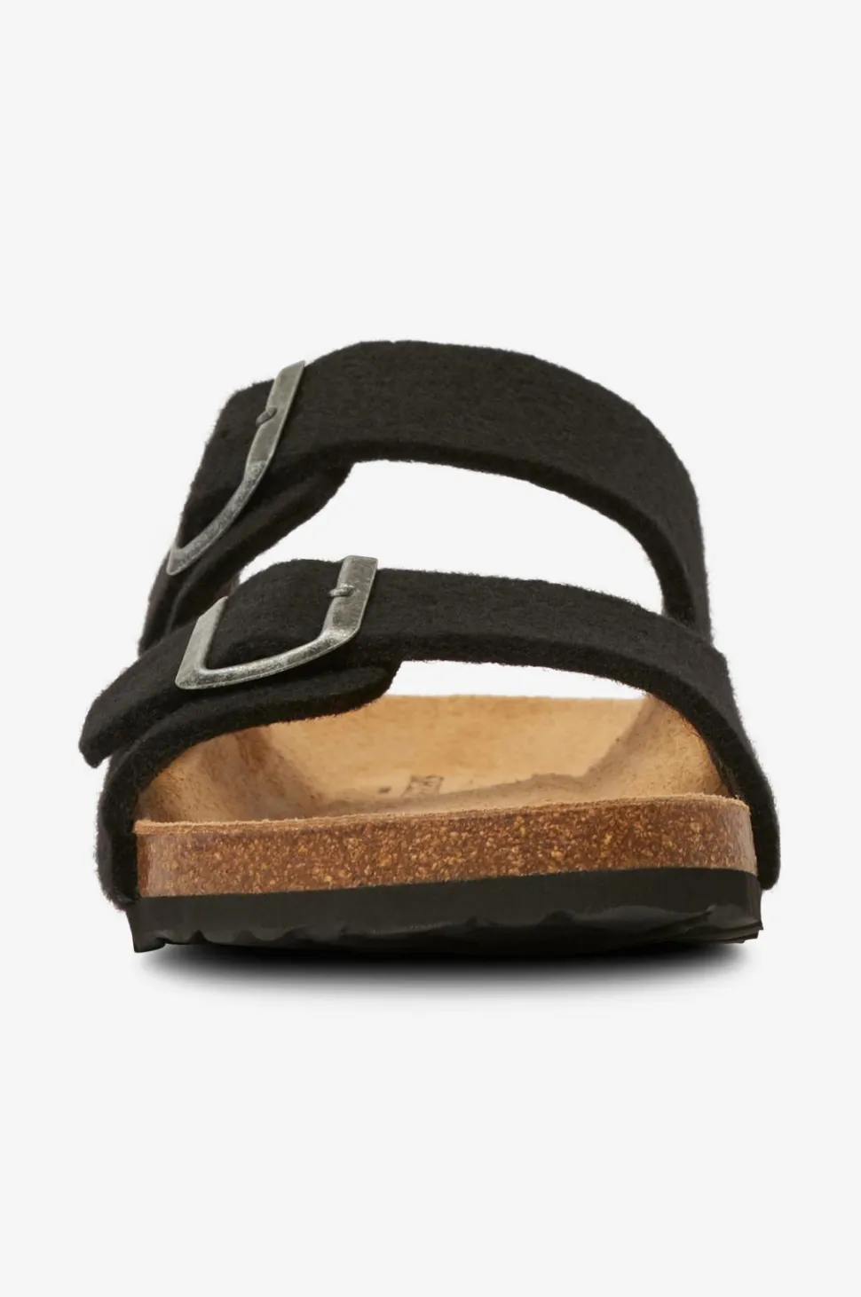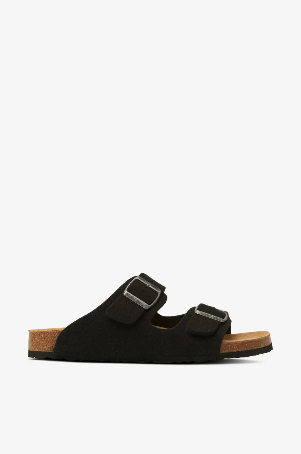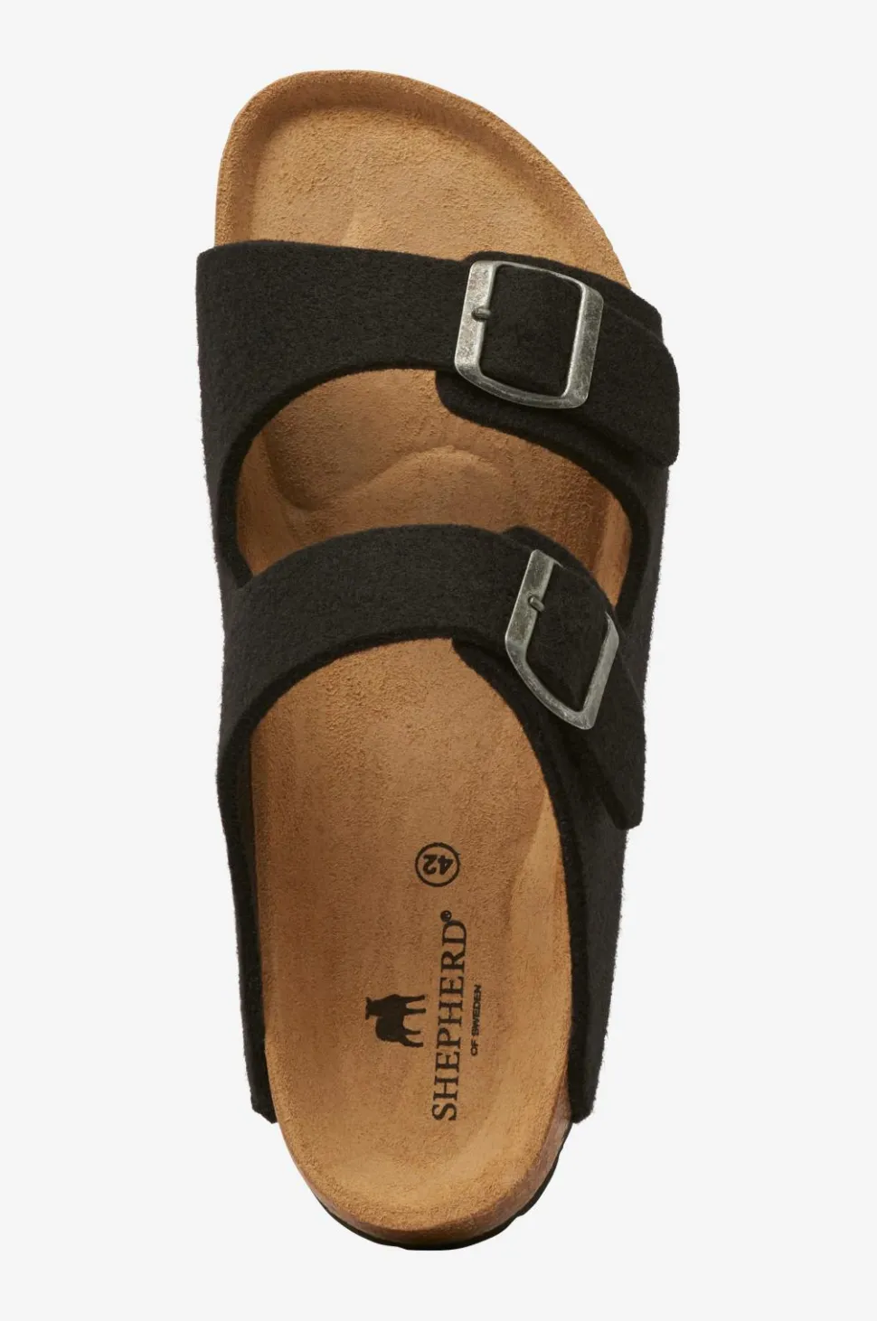 Hjemmesko Mikael fra Shepherd er stabile og behagelige i fodformet model. Den klassiske sandal har to justerbare remme i blød og smidig uld. Anatomisk udformet sål i kork beklædt med ruskind. Ydersål i EVA for lav vægt og støddæmpning.