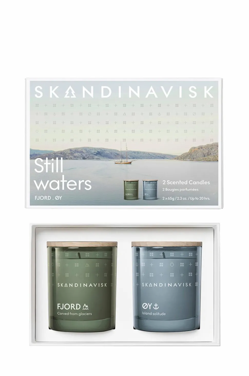 En hyldest til endeløse dage tilbragt i en sommerdis langs vandvejene. Vores Still Water-duftlysduosæt samler to af vores kystdufte, Øy og Fjord.