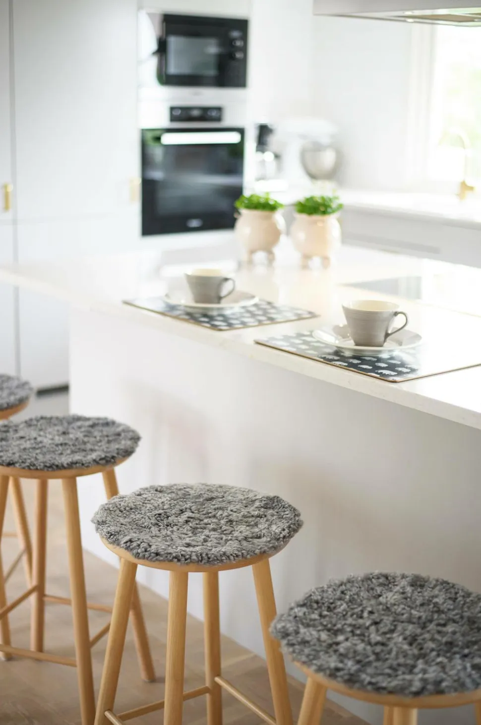 Rundt siddeunderlag i naturligt curly fåreskind fra Australien. Curly pad er vores mest populære siddeunderlag. Det giver ekstra komfort til din yndlingsstol.