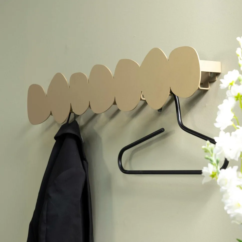 Den store vægknagerække Tumulo fra spinder x Eva Van De Ven-kollektionen er et eksklusivt design af Eva Van De Ven, som er kendt fra den hollandske tv-serie Vtwonen. Funktionalitet og stil er smeltet sammen i designet af denne knagerække. Takket være brugen af genanvendelige materialer er disse knagerækker et bæredygtigt valg! Tumulo large wall coat rack, som er en del af stones-serien, er en stilfuld knagerække med 7 skjulte kroge, som er ideel til badeværelset, soveværelset eller selvfølgelig din entré. De organiske former på denne knagerække er inspireret af stablede stentårne, også kendt som stenmænd, og blev født af Evas kærlighed til krystaller og sten. Tilføj denne stilfulde tilføjelse til indgangen til dit hjem for at give dit interiør den ekstra smule elegance. Tip fra Eva: Hæng din hat, dit tørklæde eller din kasket over ‘stenene’ for ekstra funktionalitet!