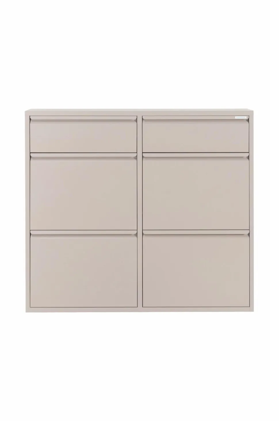Med et slankt, lavt design i pulverlakeret stål er Billy 6 skoskabet et stilfuldt svar på et almindeligt problem: sko, der ligger og flyder. Et multifunktionelt skoskab, der fås i flere størrelser, og som er et praktisk blikfang både på gulvet og på væggen. Billy 6 har plads til ca. 12 par sko. De øverste rum kan fyldes med handsker eller andet tilbehør, ideelt! Vores tip: Hæng flere Billy’er ved siden af eller over hinanden for at få en legende effekt.