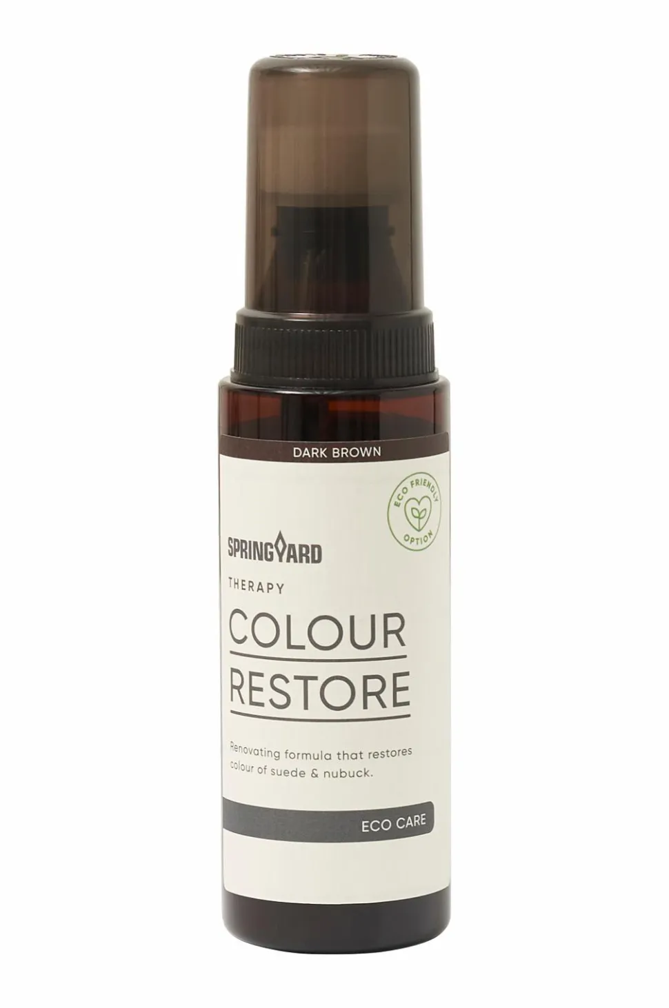 Flydende skocreme til opfriskning af ruskind og nubuck. En vandbaseret og skånsom formulering, der genskaber farve og glans, og hvor ingredienser og råmaterialer er nøje udvalgt med hensyn til miljø og sundhed. Colour Restore forhindrer udtørring og giver samtidig en let vandafvisende effekt. Efterlader en frisk, naturlig duft med et strejf af timian. Brug den regelmæssigt for at forlænge dine skos levetid. Fås i flere farver.