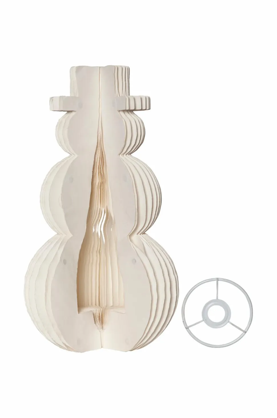 Dekoration i form af en snowman lavet af papir. Placer din pære indeni, og tænd den, lige så flot med en lyskilde som uden. Pynt op til advent, og det giver en dejlig julestemning. Ledning og lyskilde sælges separat, mix og match med vores indendørs ophæng og lyskilder. Passer til e14-sokkel.