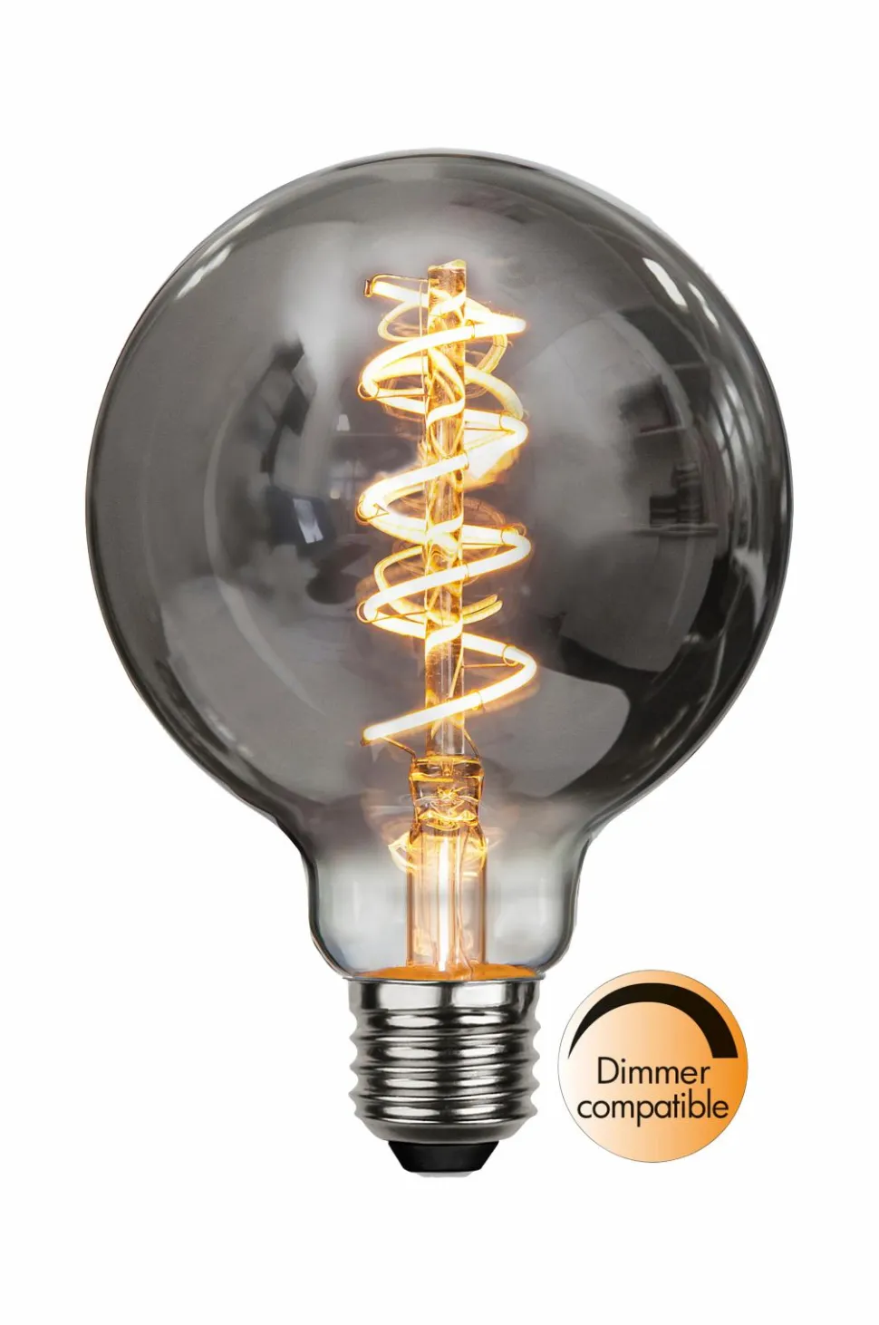 95 mm led-lampe til dekorationsformål. Glasset har røgfarve, der giver en varm og blød glød.fatning: e27.farvetemperaturen er 2100k og lysstrømmen 50lm, denne pære er kompatibel med lysdæmper.