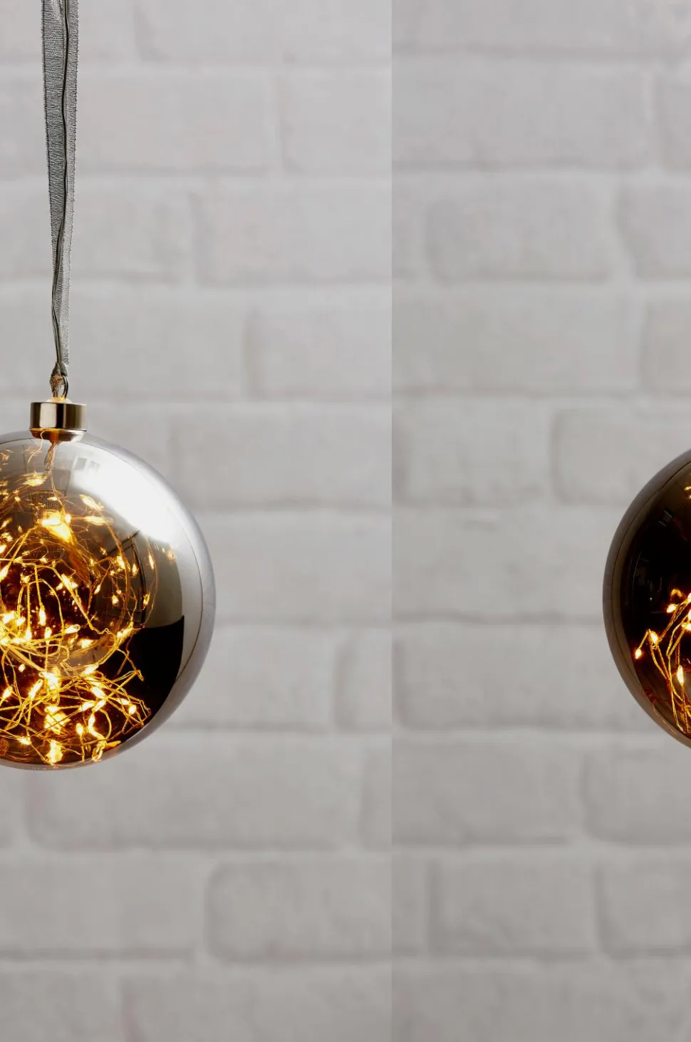 Glaskugle med dewdrop-lyskæde. 15 cm. Lyskæden har 40 LED-pærer. En meget flot glasdekoration, som giver et smukt skær, og som kan hænges frit i alle hjemmets rum.