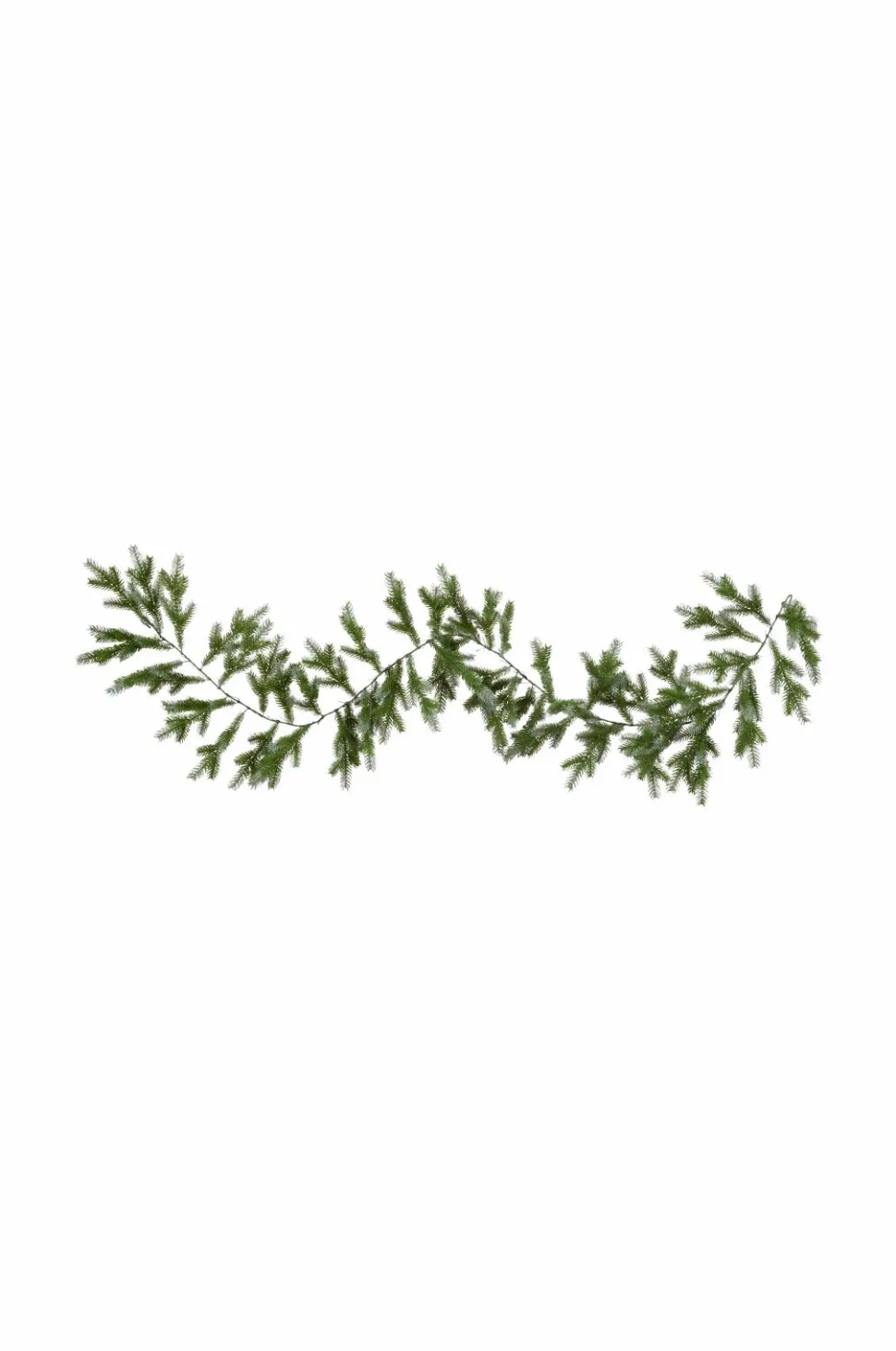 Grøn guirlande i PE-materiale. Længde 200 cm. Kan bruges som dekoration både indendørs og udendørs.
