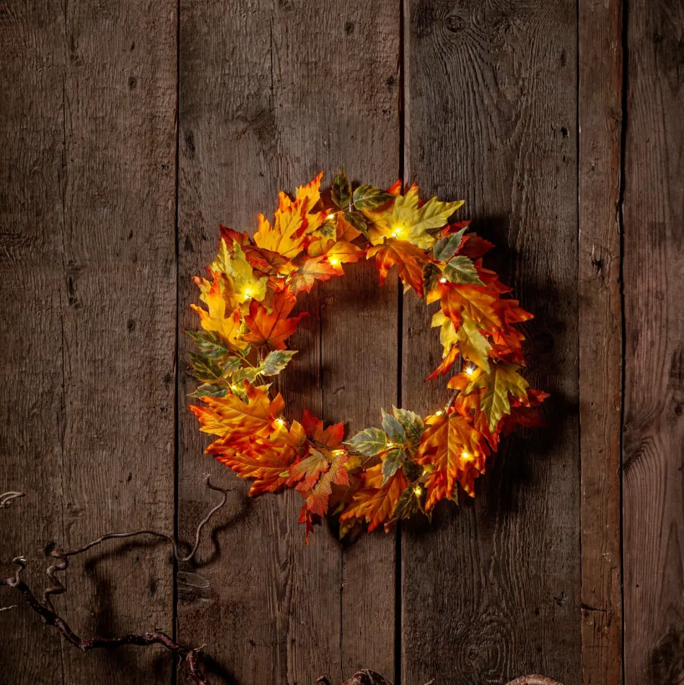 Smuk krans i autumn farver med 30 varmhvide dugdråber, der giver et behageligt skær. En fin krans at dekorere med på en hoveddør, i et vindue eller som en vandret dekoration på et bord. Lyskæden drives af 3 aa-batterier og har en indbygget timer. Batterier er ikke inkluderet. Se også flere produkter fra vores høstsæson-serie.