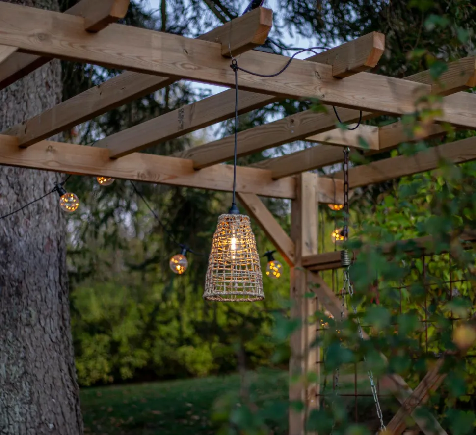 Flettet lampeskærm af tørret søgræs, størrelse 30x33cm. Lampeskærmen er håndflettet, hvilket giver hvert produkt et unikt udseende. Holder lavet til at passe til e27-ledningssæt. Mix og match med vores udendørs ledningssæt og pærer.