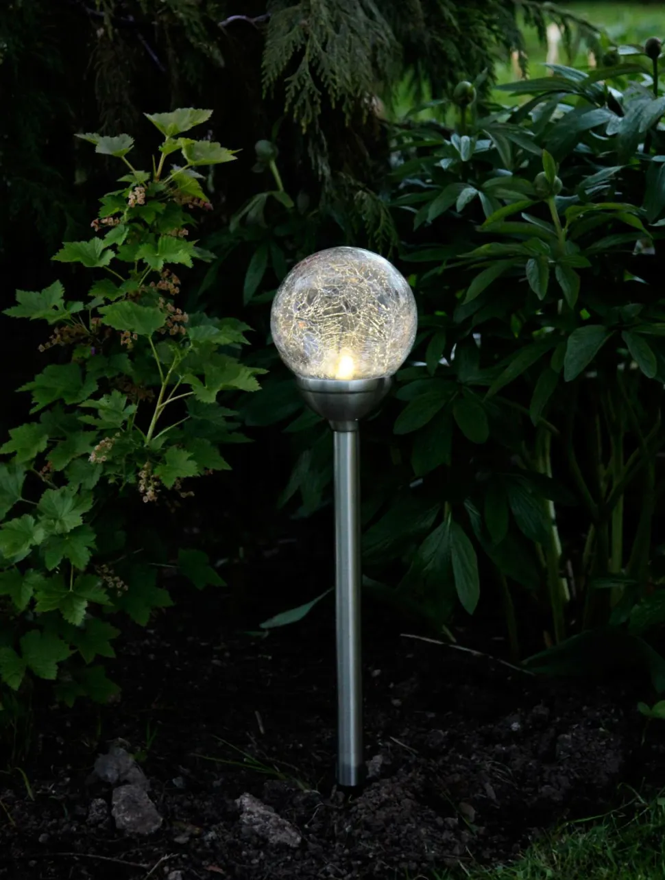 Glaskugle med solenergi. Metal og glas. Mål: Bredde 12 cm. Højde 45 cm.