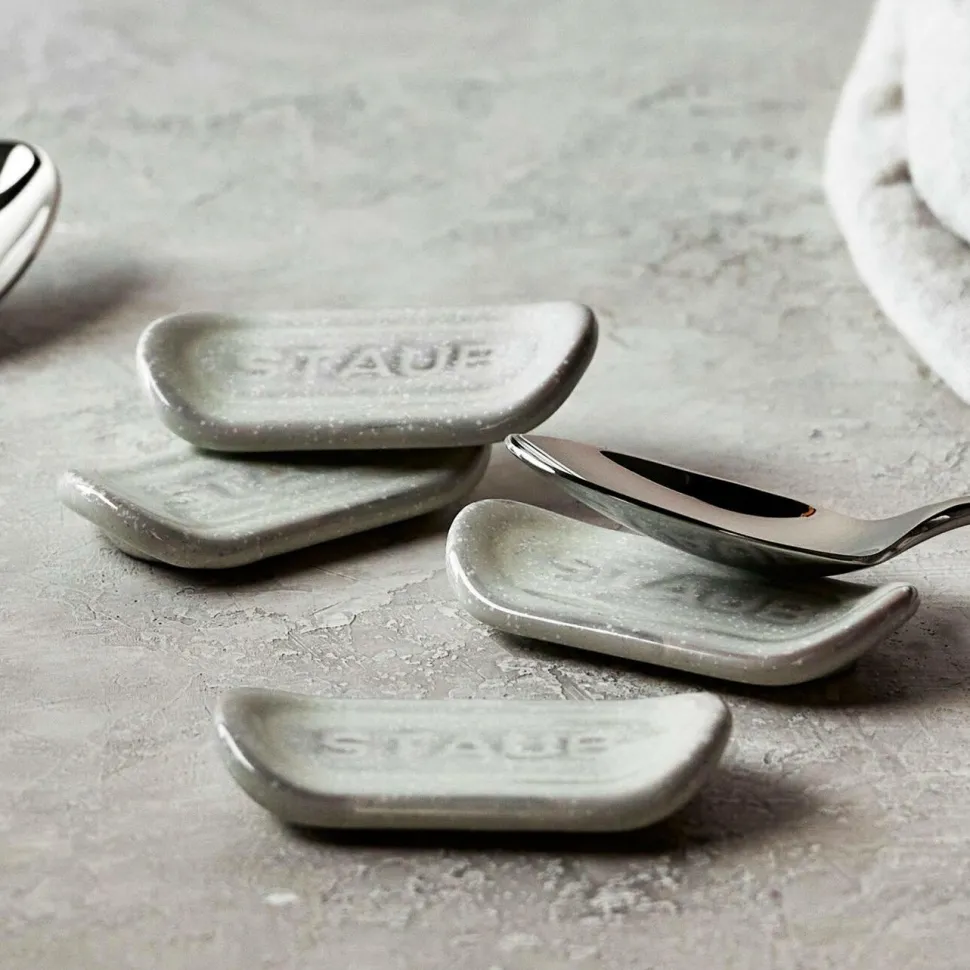 Fire bestikholdere (kaldet “repose couvert” på fransk) i keramik. De tilføjer det sidste, luksuriøse touch til det dækkede bord.