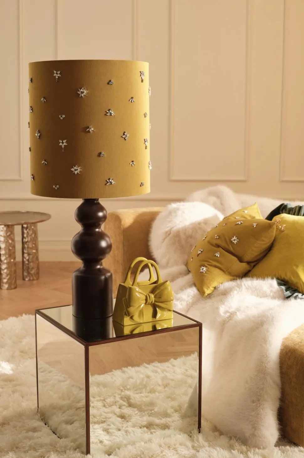• Cylindrisk lampeskærm i bomuldstwill med dekorative glassten