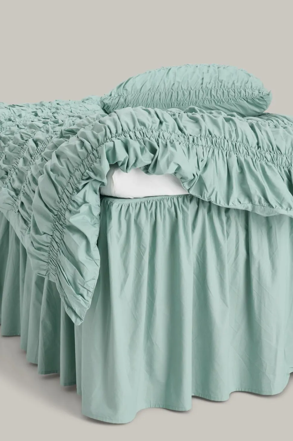 • Mål på denne måde: For at få den korrekte højde på sengetæppet skal du måle højden fra gulvet til toppen af springmadrassen (under madrassen).