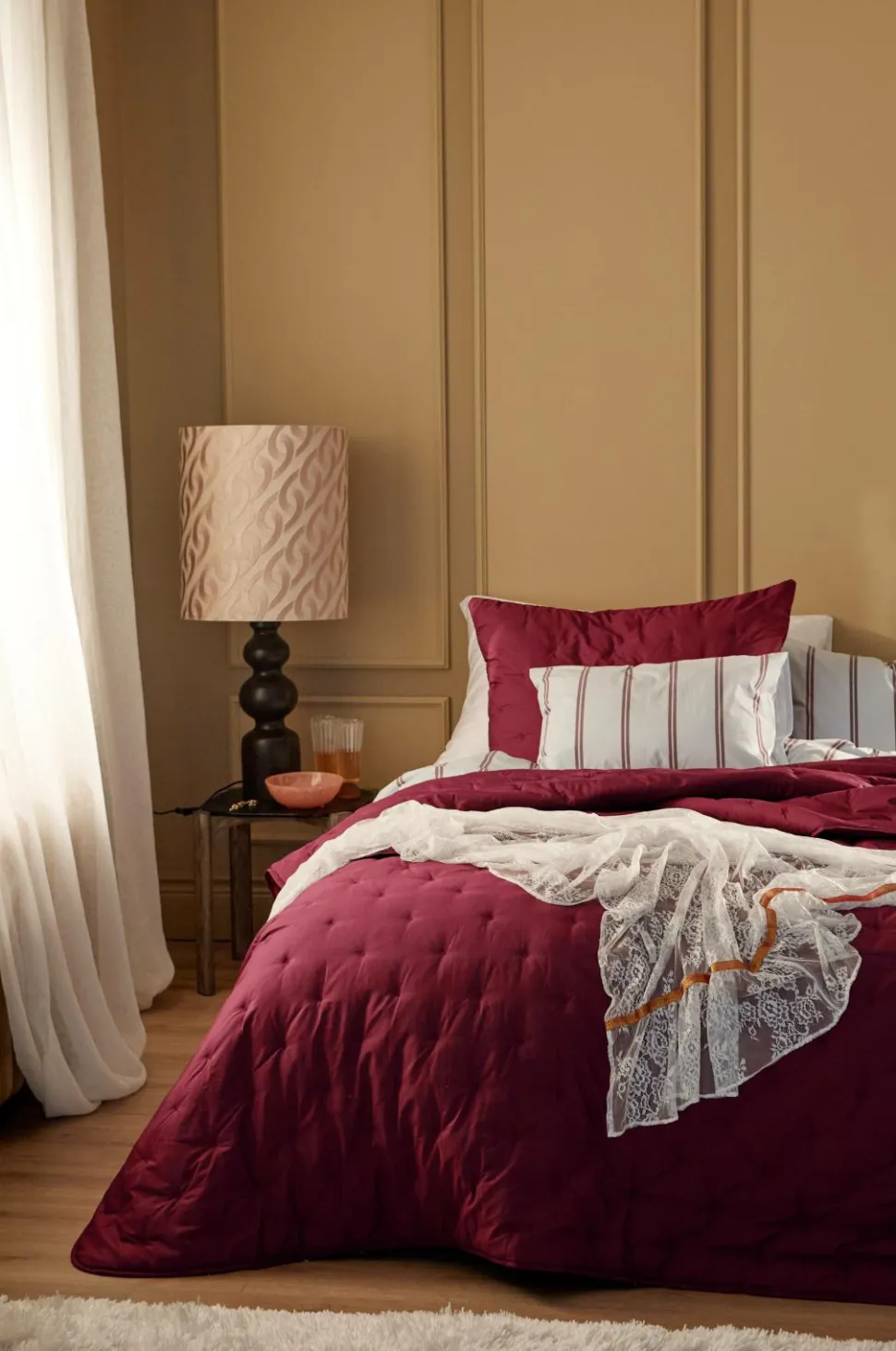 • Quiltet, foret sengetæppe i sprød bomuldspoplin
