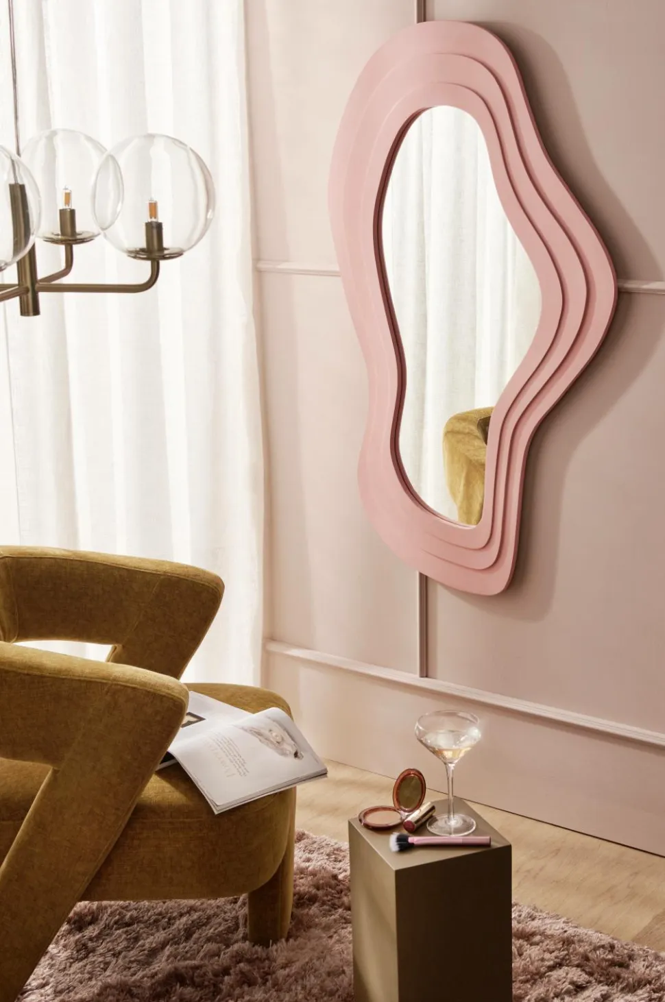 Spejl med uregelmæssig, organisk form. Ramme af lakeret MDF. Til vægophængning. Spejlfladens mål: B 42 x H 96 cm.