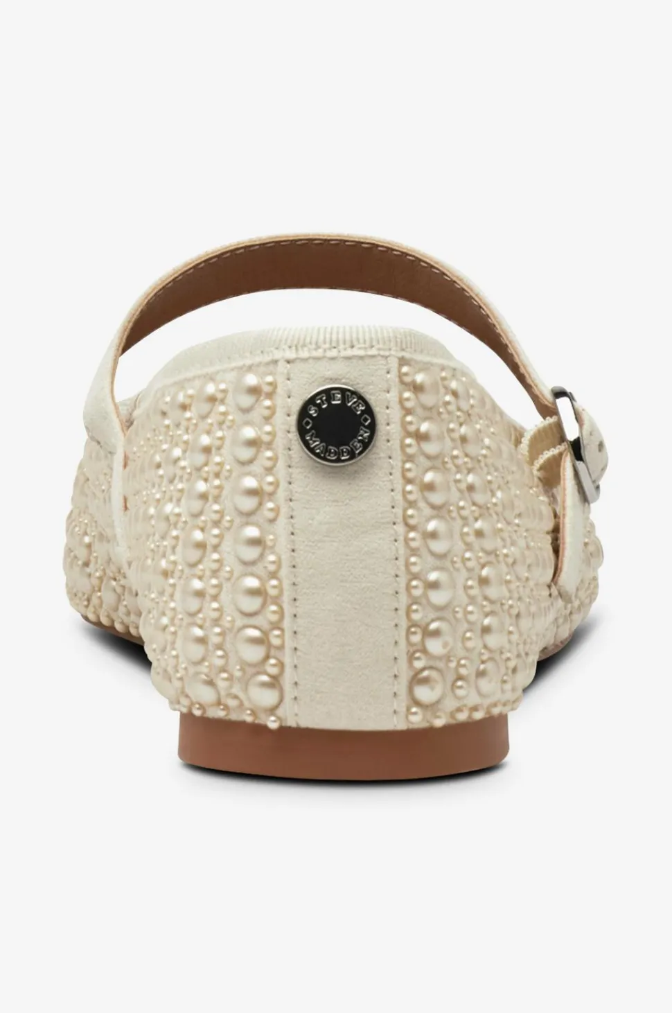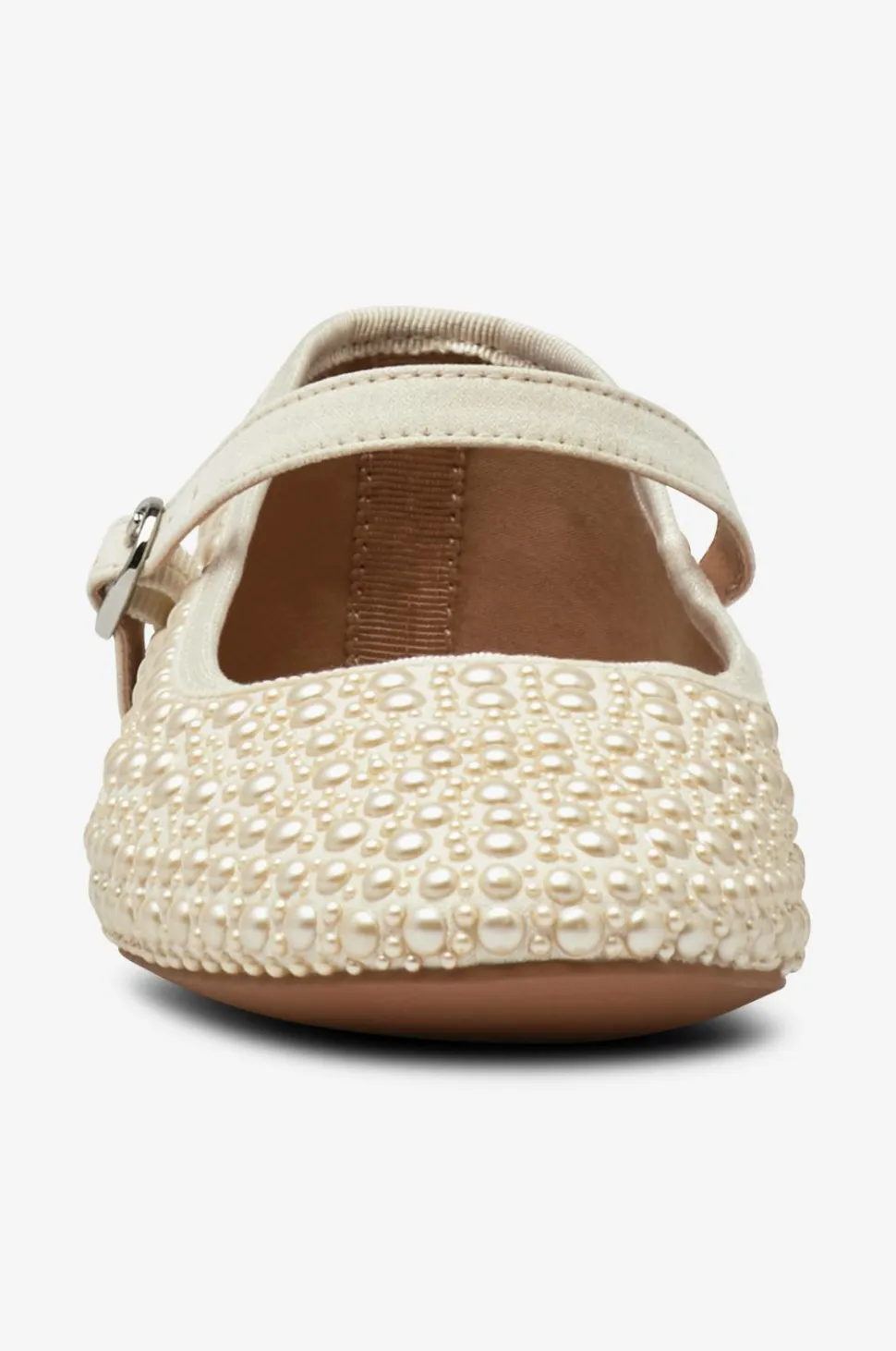 • Ballerinasko i tekstil med dekorative perler hele vejen rundt