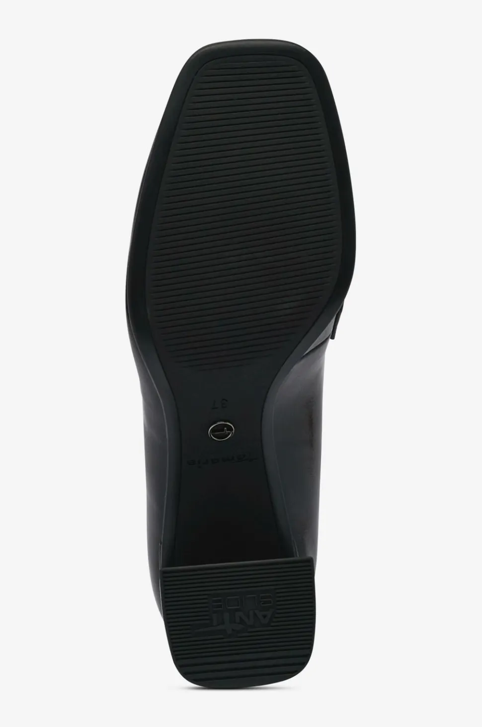 • Loafer i blankt imiteret læder med høj, beklædt hæl