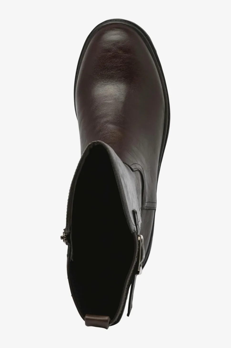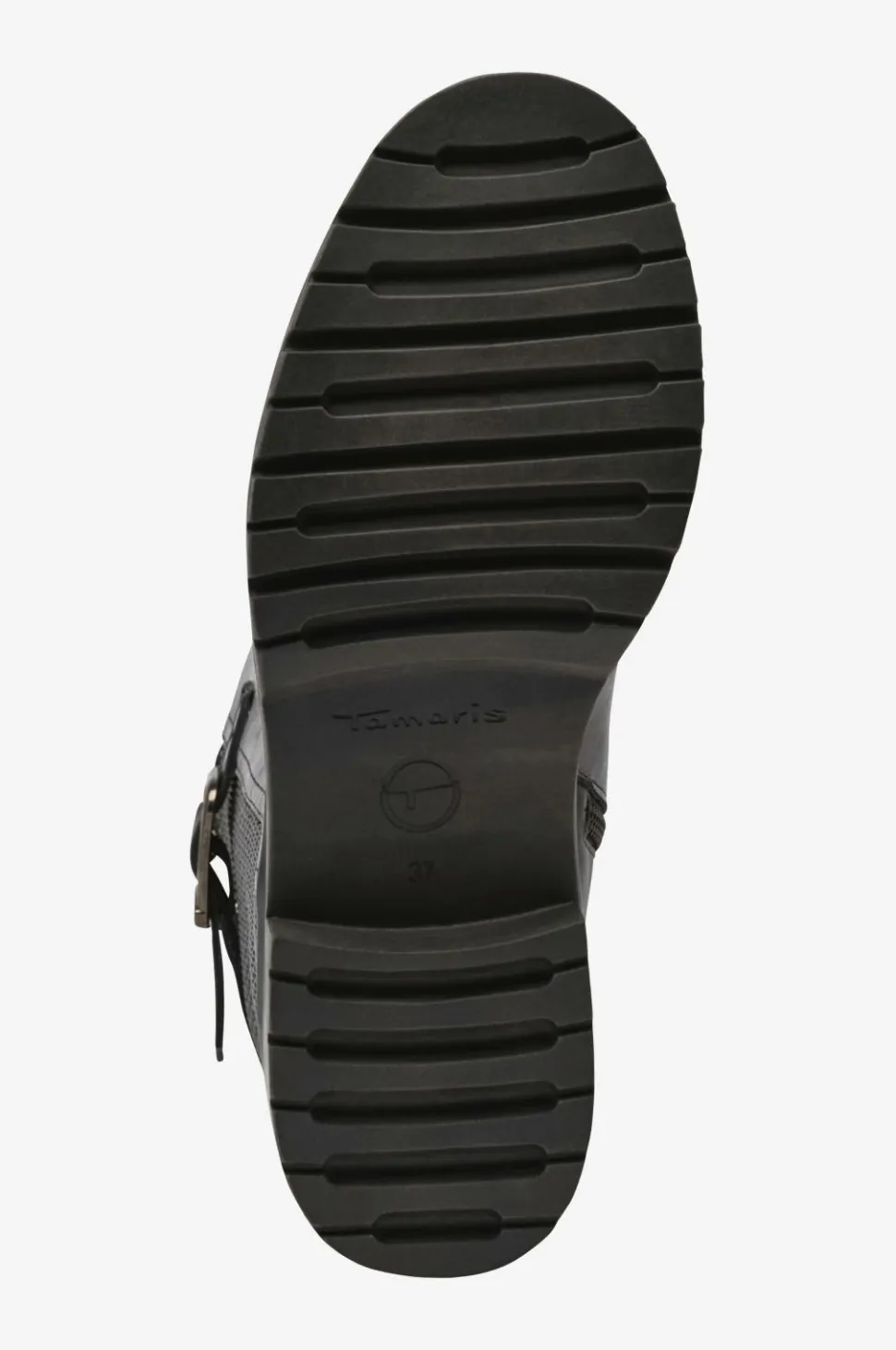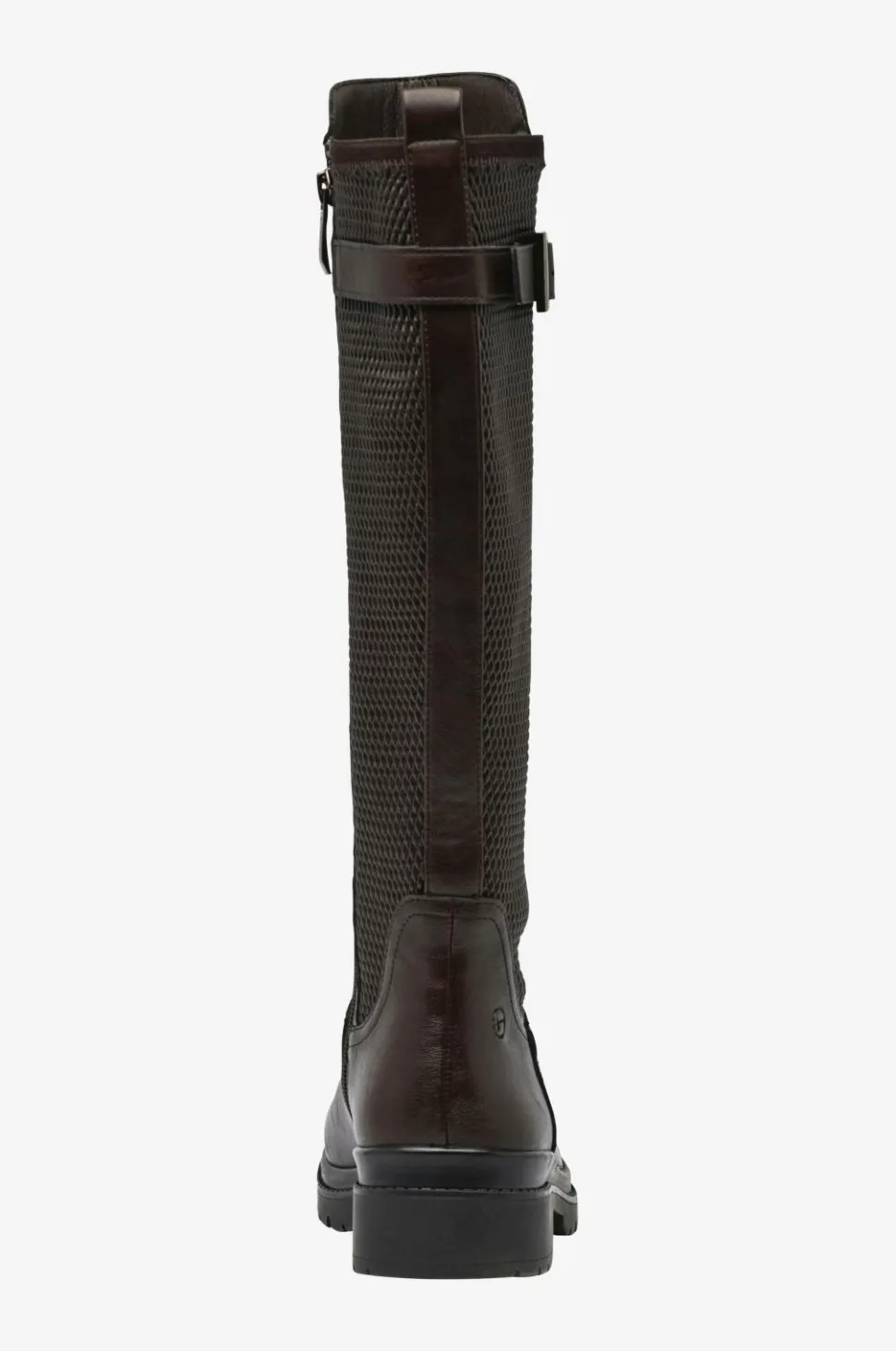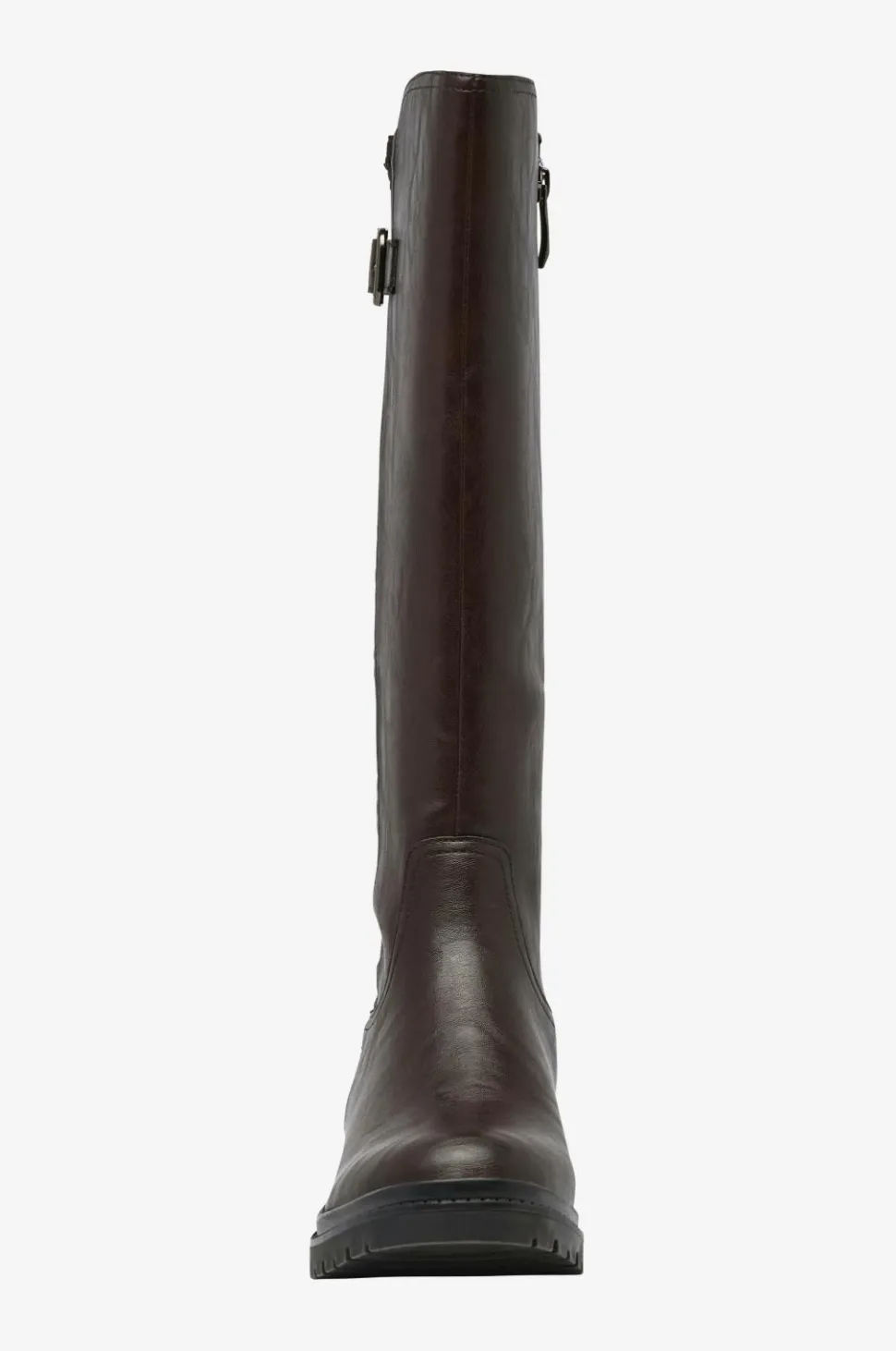 • Øvredel i imiteret læder med beklædt, bredt elastisk panel bag på skaftet