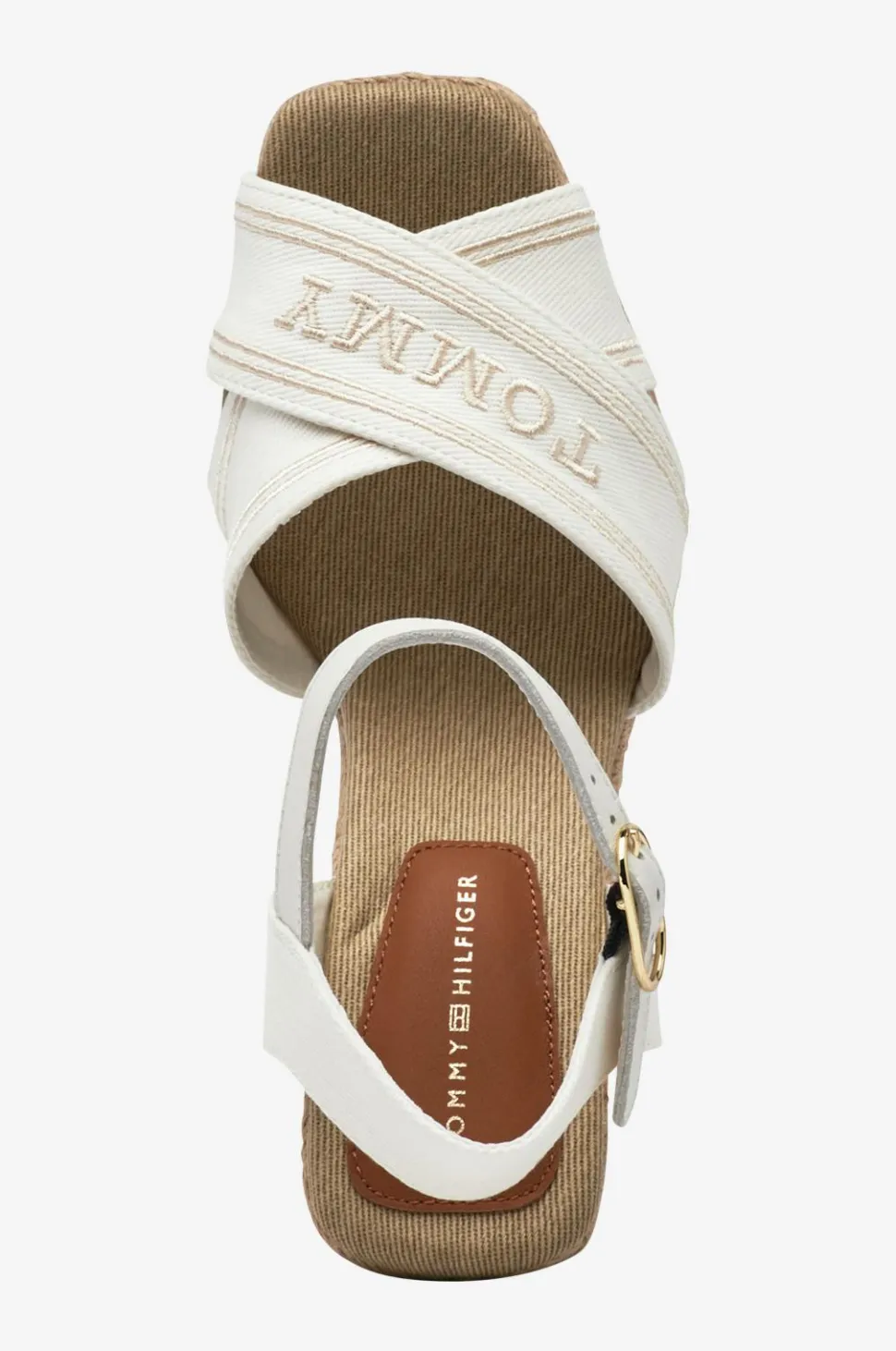 • Krydsende remme over foden med broderet logo